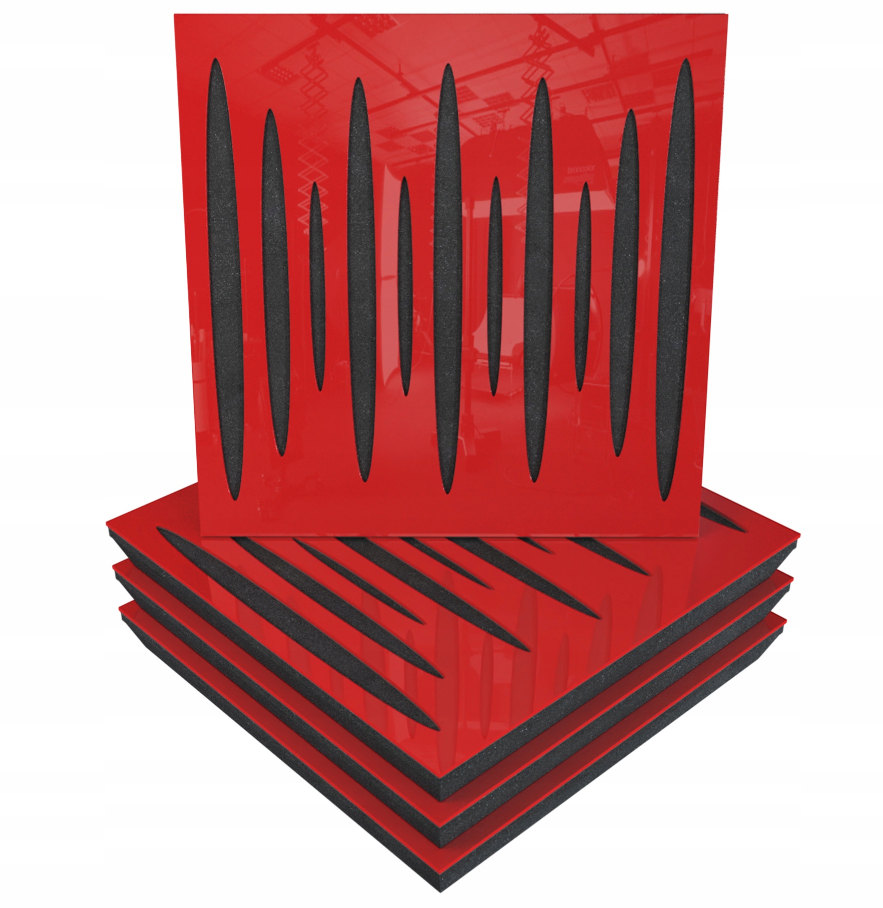 4шт АКУСТИЧНІ СТІНОВІ ПАНЕЛІ | "Пульсар" 50х50х5см | Червоний пластик