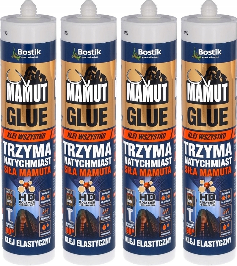Клеїть все без опори - клей Mamut - це однокомпонентний, стійко еластичний, надв'язкий і густий клей на основі гібридної основи (технологія HD POLYMER), для кріплення важких або важконавантажених матеріалів у домі, будівництві та промисловості. Наш клей - унікальний продукт. Він міцний і гнучкий, до нього можна легко прикріпити важкі або сильно навантажені елементи. КЛЕЙ MAMUT чудово замінює дюбелі, шурупи та цвяхи, а головне, він стійкий до несприятливих погодних умов, тому підходить для внутрішнього та зовнішнього використання.