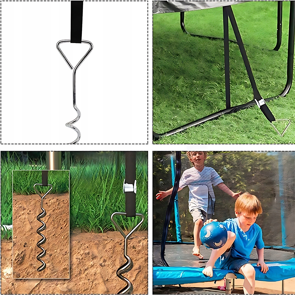 Наші батутні кілки підходять для різних розмірів і форм, кріплять батут до землі для підвищення стабільності. Ці балдахіни мають вирішальне значення у вітряну погоду, щоб запобігти перекиданню чи здуванню.