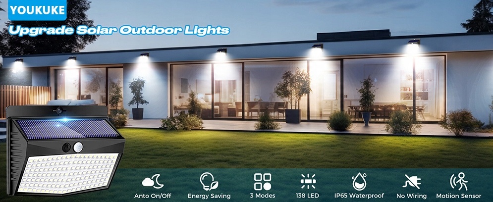 【Супер яскраві зовнішні сонячні ліхтарі】 Удосконалені зовнішні сонячні ліхтарі YOUKUKE оснащені 138 високоякісними світлодіодними кульками холодного білого світла, які є набагато яскравішими та економічнішими, ніж інші зовнішні сонячні ліхтарі. з датчиком руху на ринку. Зовнішні сонячні ліхтарі можуть ідеально освітлювати вашу територію на відкритому повітрі, наприклад вхідні двері, сад, стовпи паркану, під’їзд, двір, гараж, патіо, сходи тощо.