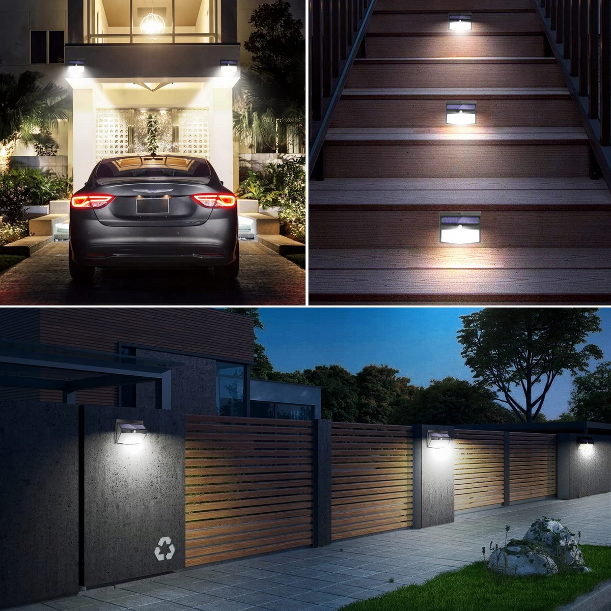 【Водонепроникні світлодіодні сонячні ліхтарі IP65】 Зовнішні сонячні ліхтарі з датчиком руху виготовлені з високоякісного чорного АБС-пластику та є стійкими. зігрівати. Завдяки професійному рейтингу водонепроникності IP65 сонячне світло є дуже яскравим навіть за екстремальних погодних умов.