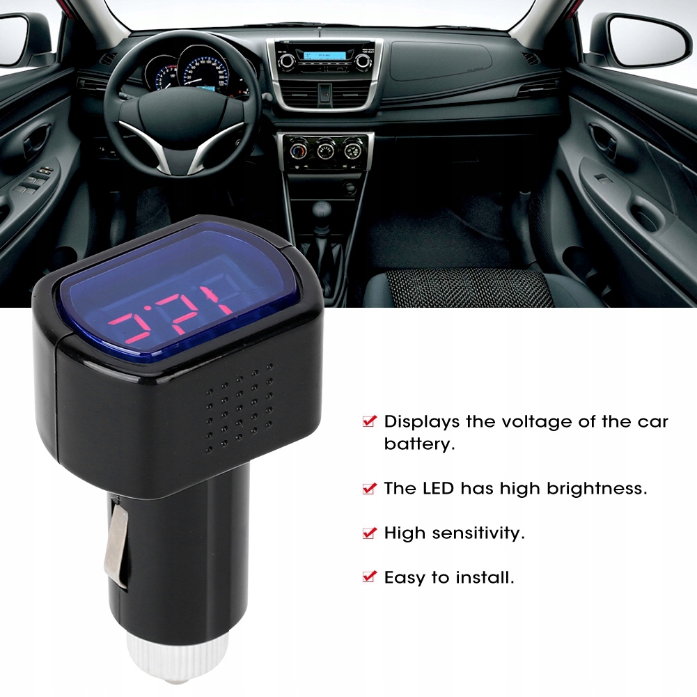 Функція:1. Цей цифровий вимірювач показує напругу акумулятора автомобіля.
