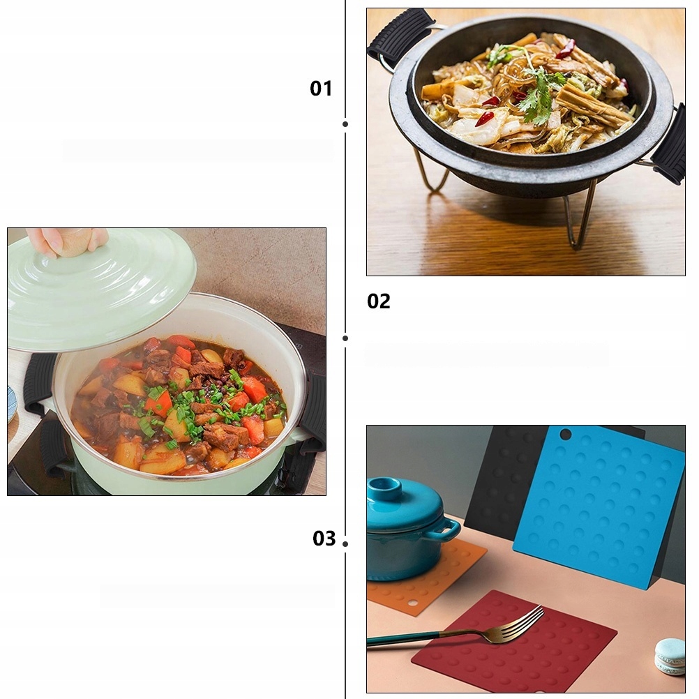 ✅Це набір силіконових підставок для каструль. Виготовлений із міцного силікону. Забезпечує чудовий захист від тепла. Термостійкий і протиковзкий, захищає руки від опіків. Створює зручне захоплення ручок гарячого кухонного начиння.