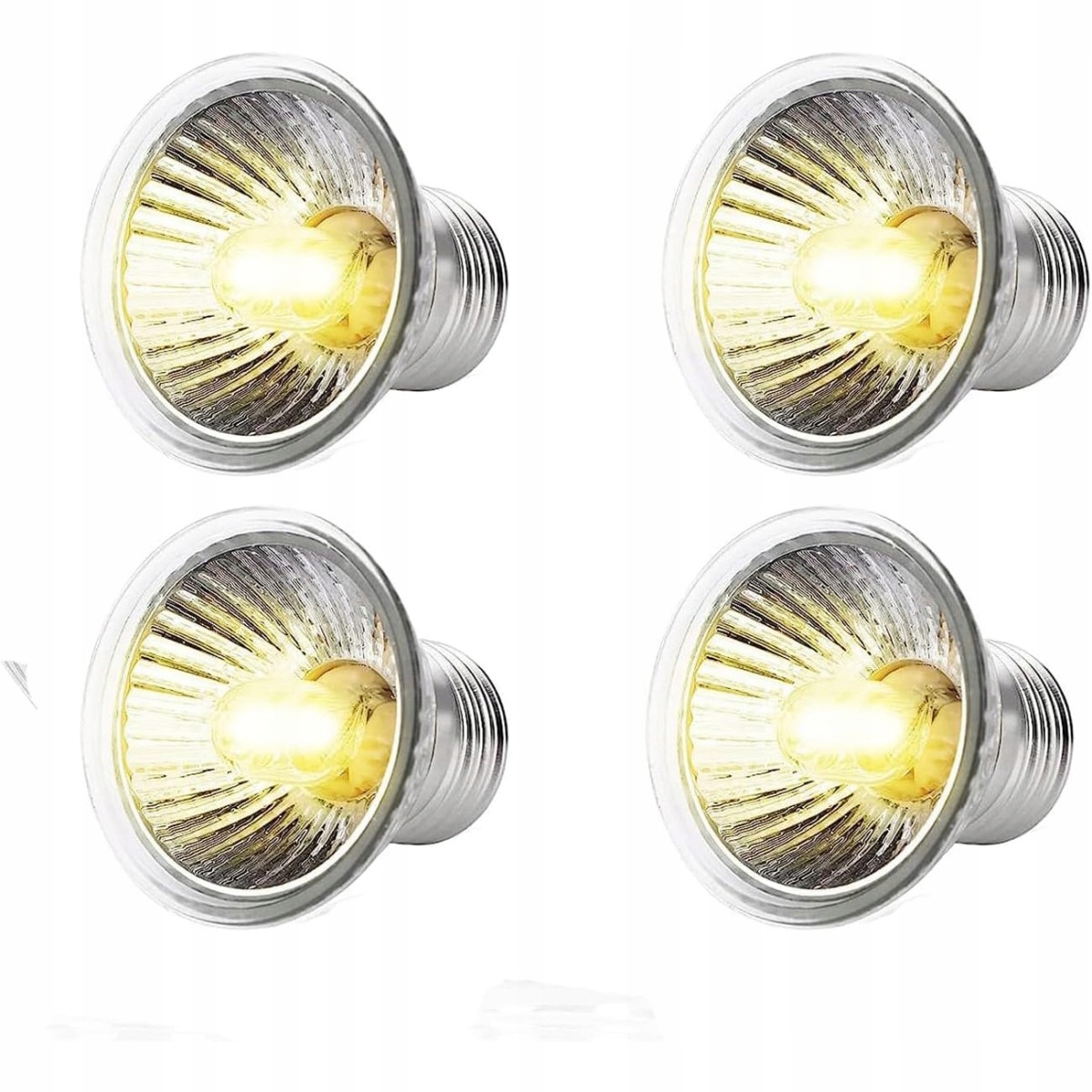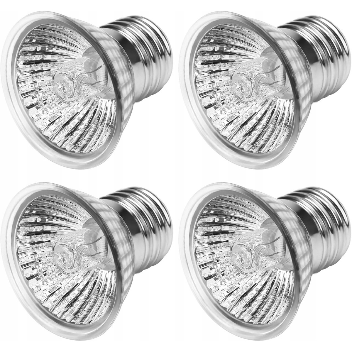 Цей комплект із 4 ламп UVA/UVB потужністю 25 Вт випромінює тепле біле світло з колірною температурою 2700 К і кутом променя 120°. Він має стандартну різьбу E27 для легкого встановлення в різноманітні освітлювальні прилади.