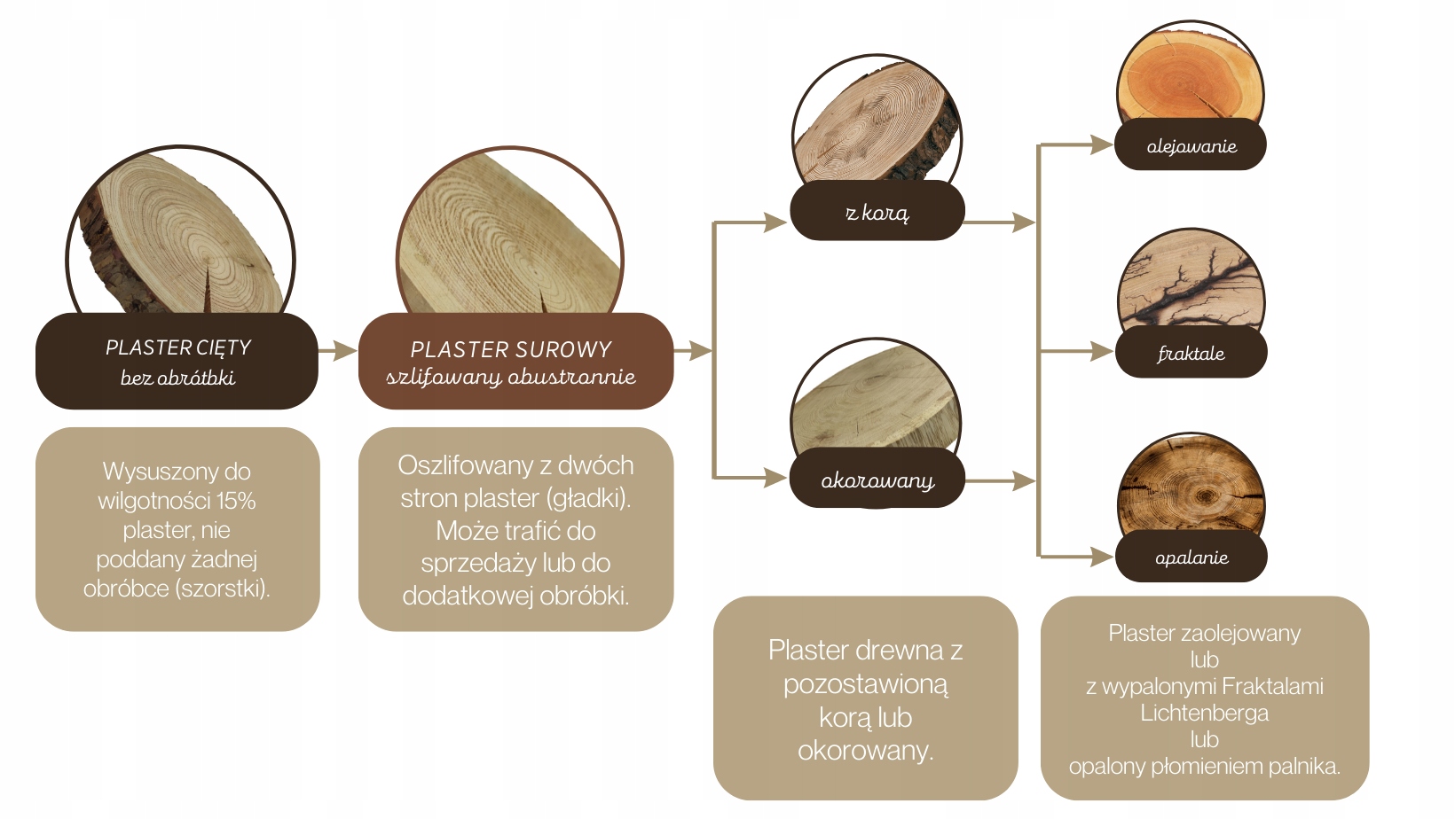 Зрізи з буртиками з натуральної кори або очищені.