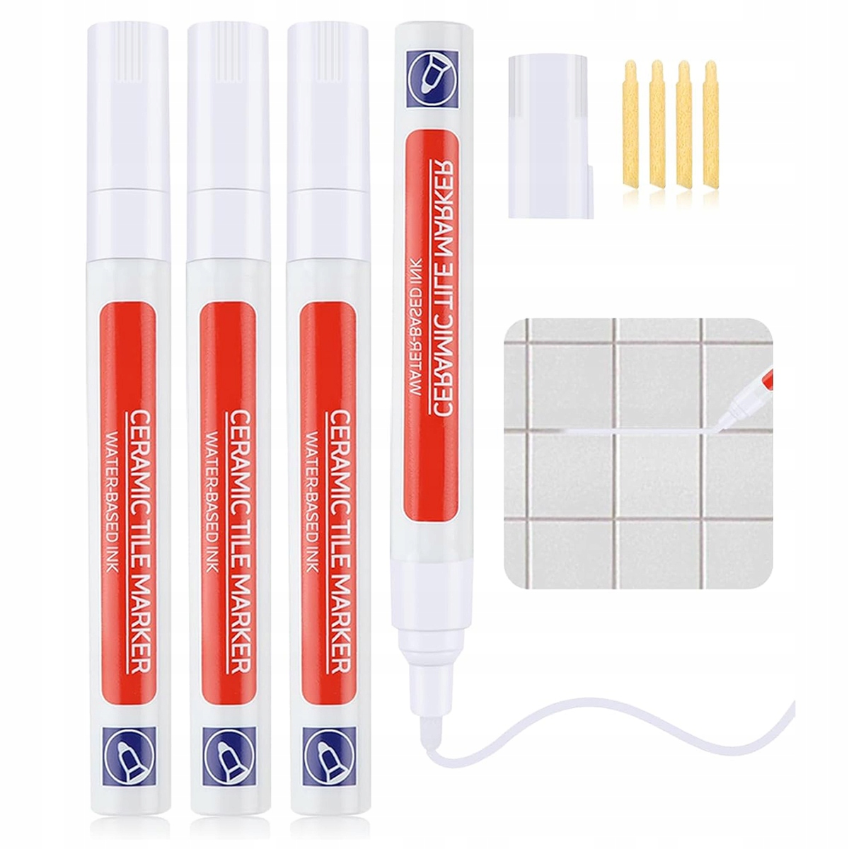 - 4 маркери для затирання плитки (зі змінними наконечниками)