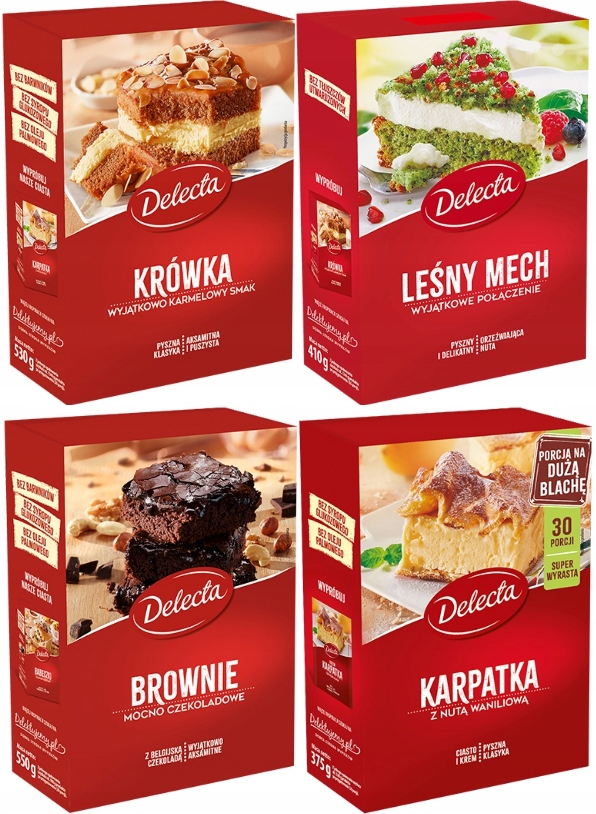 4x DELECTA CIASTO W PROSZKU GOTOWE BROWNIE KARPATKA KRÓWKA LEŚNY MECH