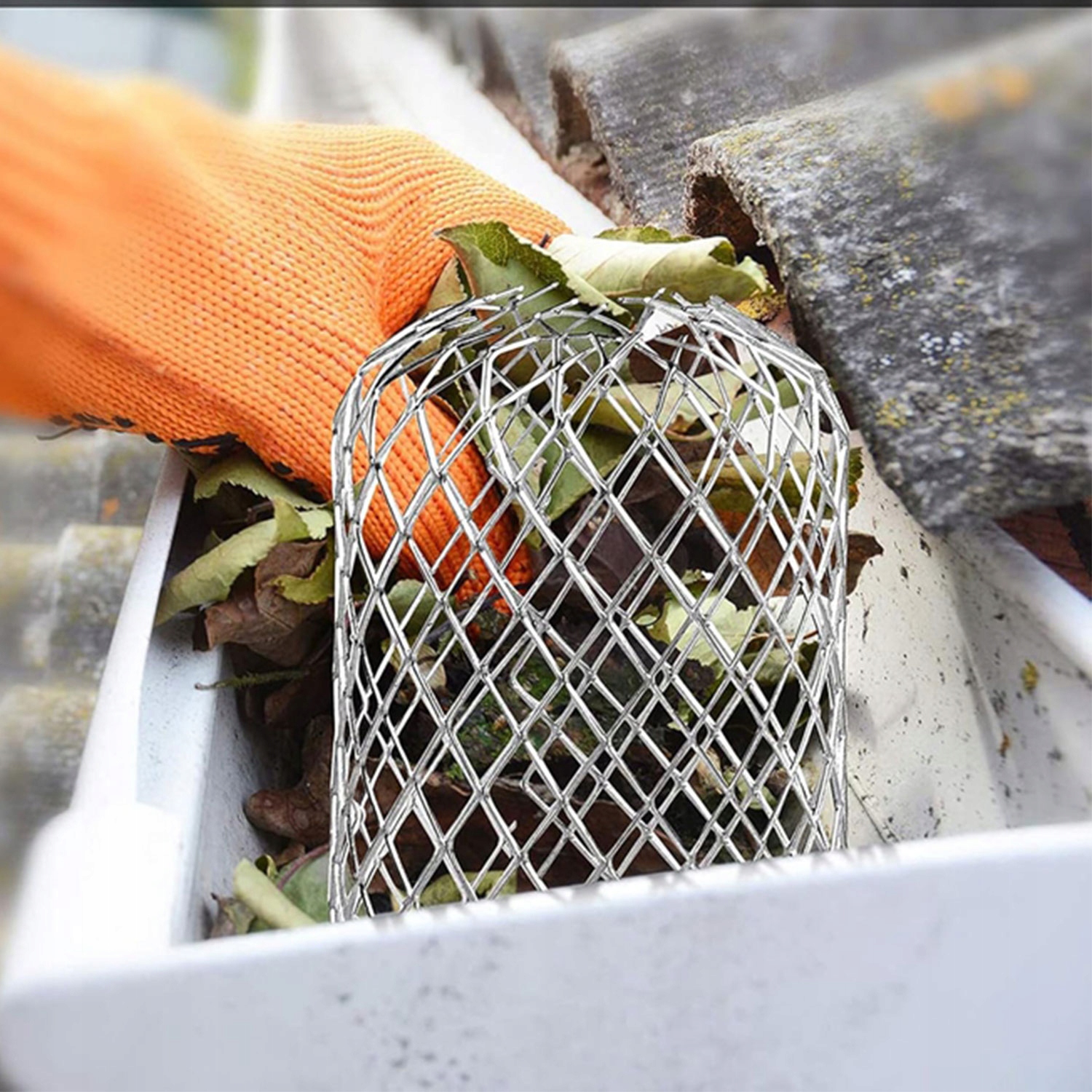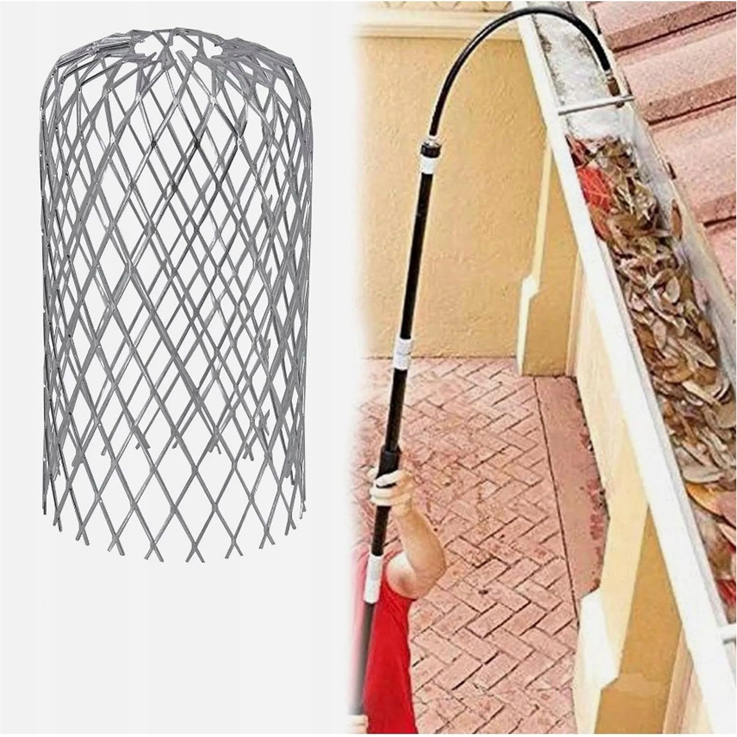 проста установка: просто регулювати Діаметр кришки жолоба, щоб зробити його трохи меншим, ніж діаметр труби тригер -фільтр листя, поставлений і закріплений, але ви також можете Розкладіть у жолобі, щоб забезпечити ретельну прилягання без засмічення.