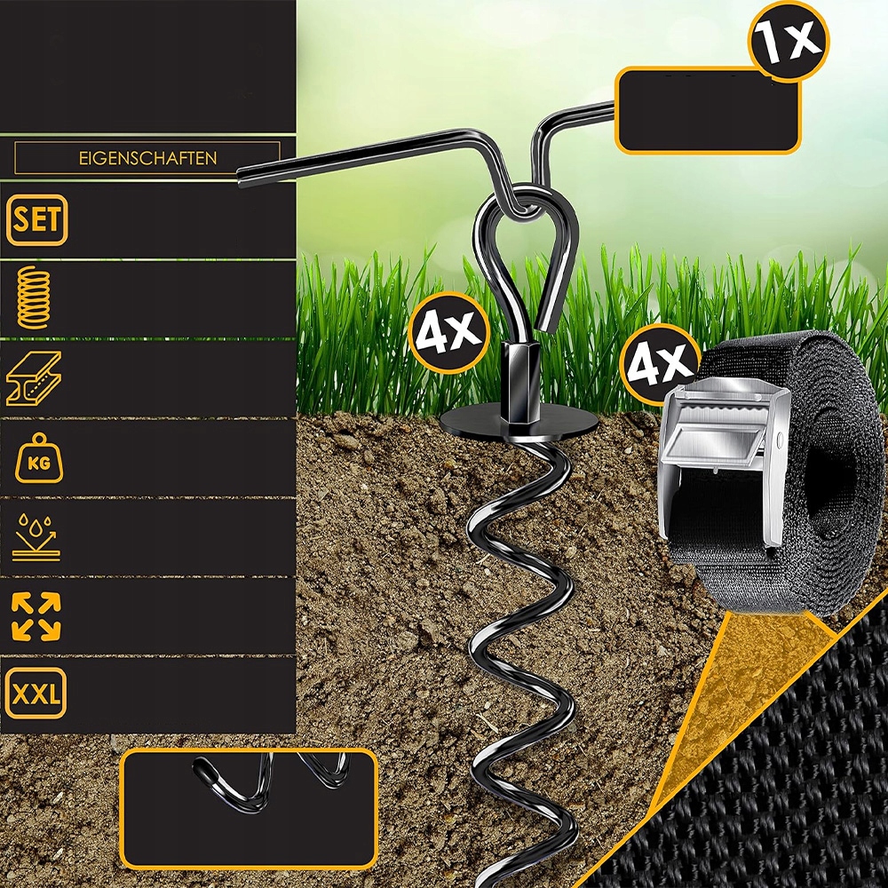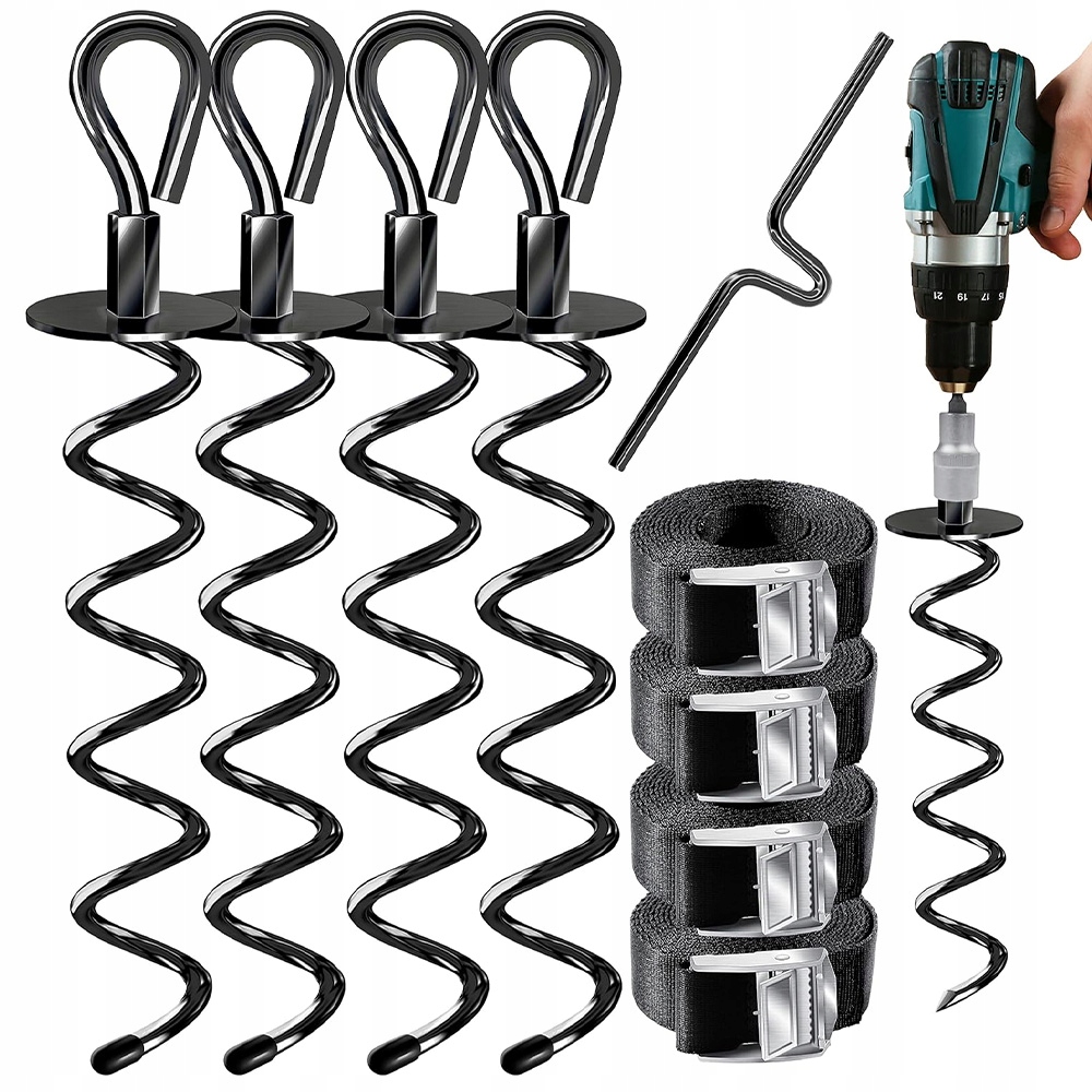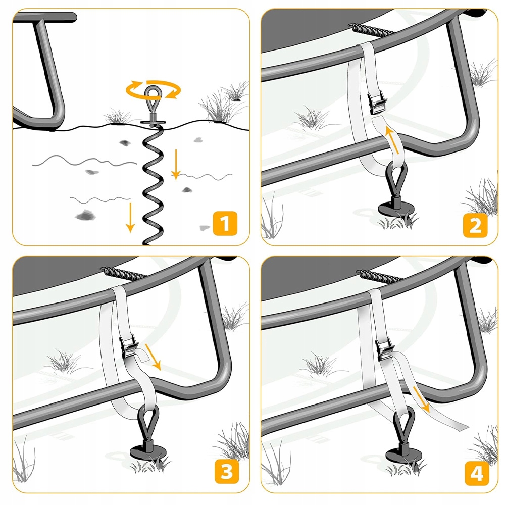4X ГРУНТОВІ АНКЕРИ КРЕПЛЕННЯ З РЕМІНКОМ ДЛЯ БАТУТА, ГОЙДАЛКИ, НАМЕТУ