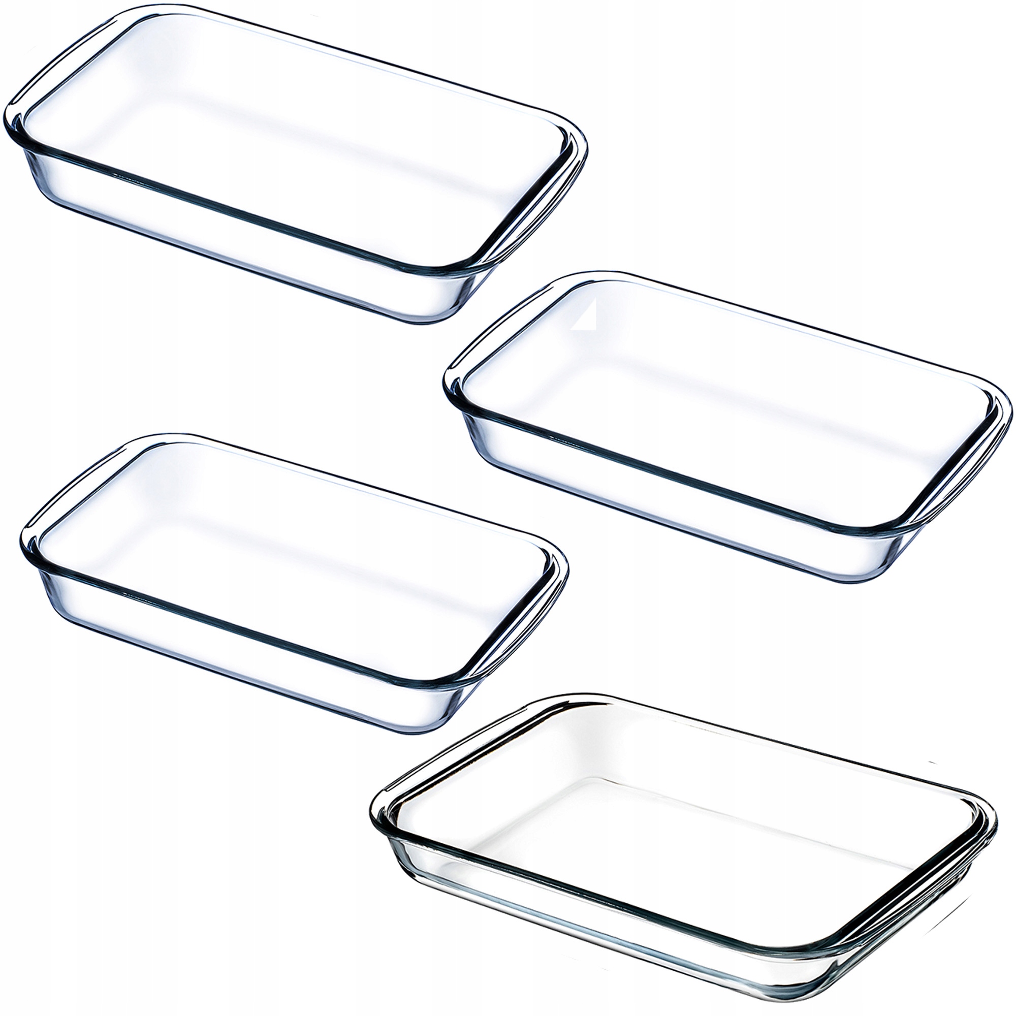 4x ПРЯМОКУТНА СКЛЯНА ЗЕМЛЕЗІЗНІКНА ФОРМА ДЛЯ НАБОРУ ДЛЯ ВИПІЧАННЯ ДУХОВКИ
