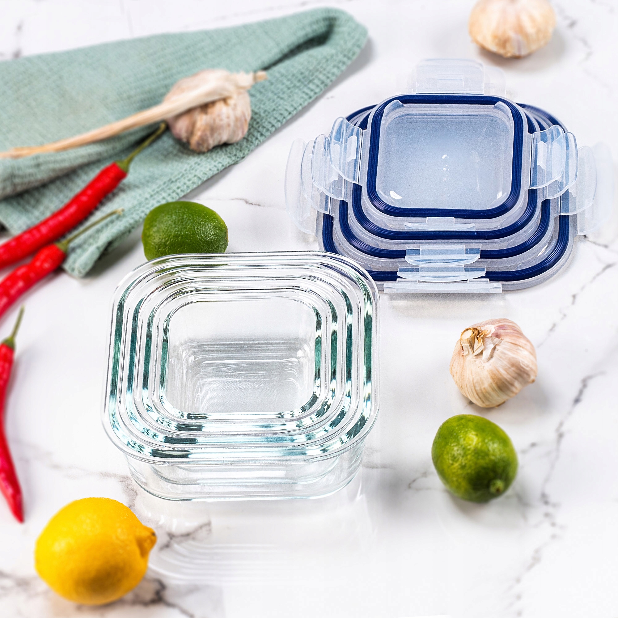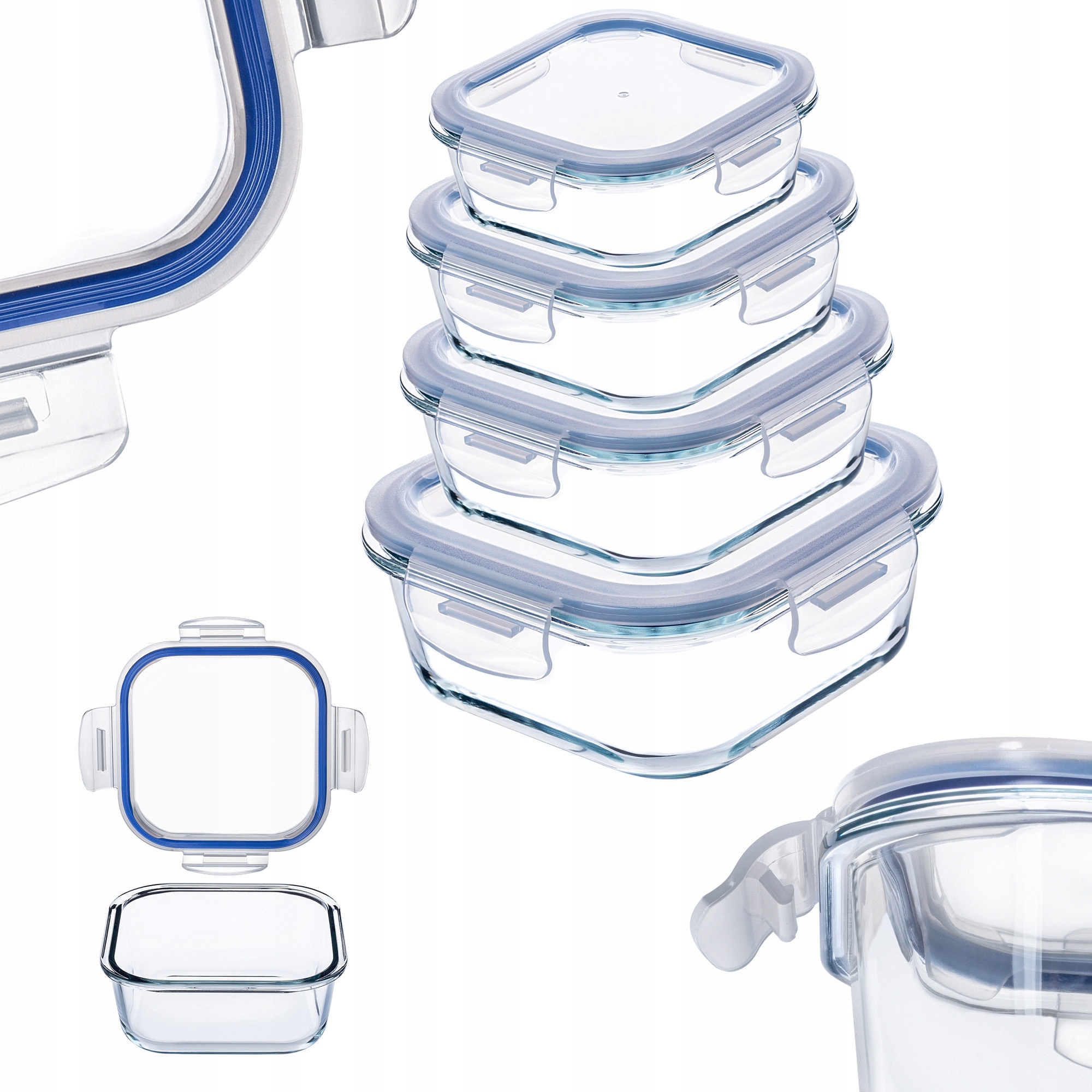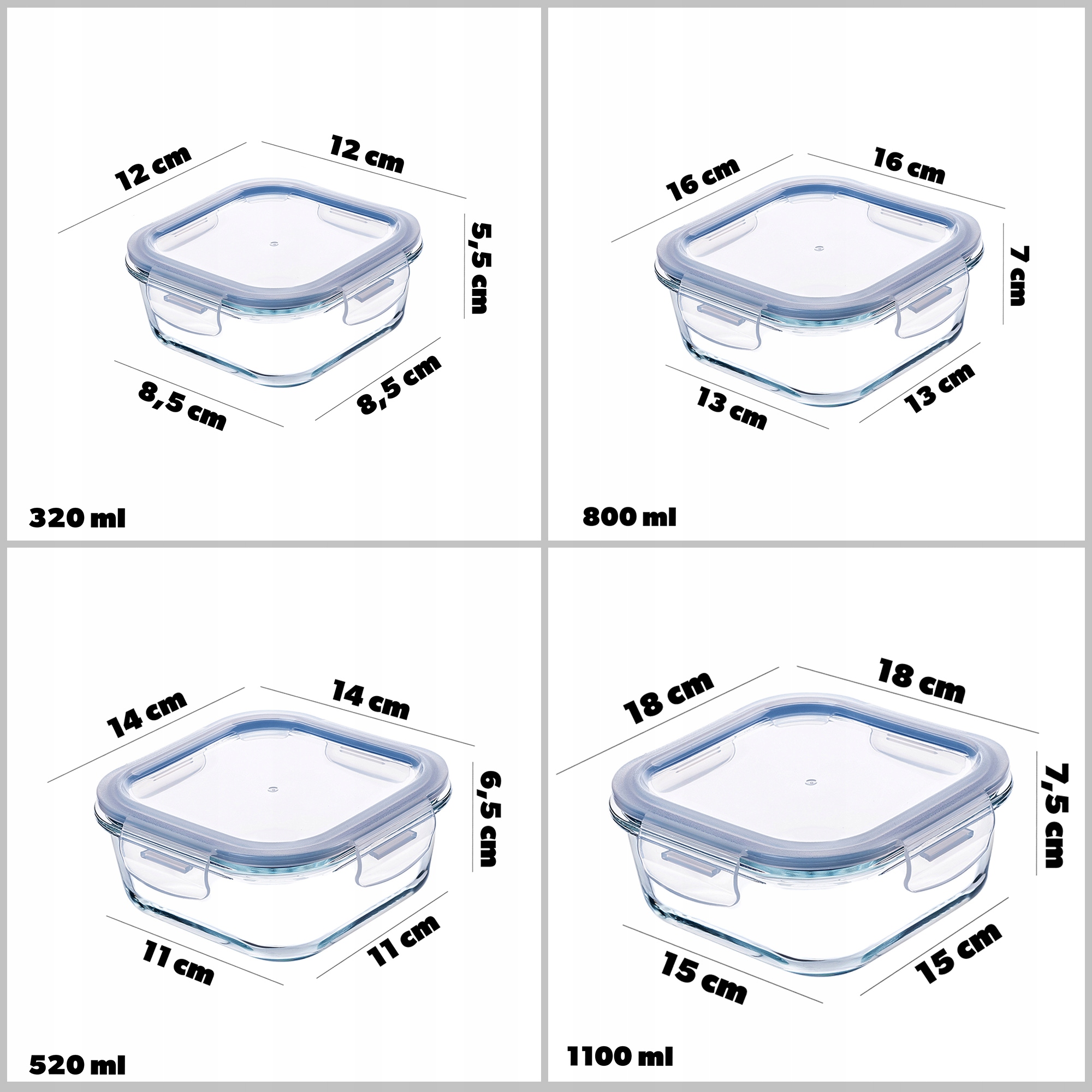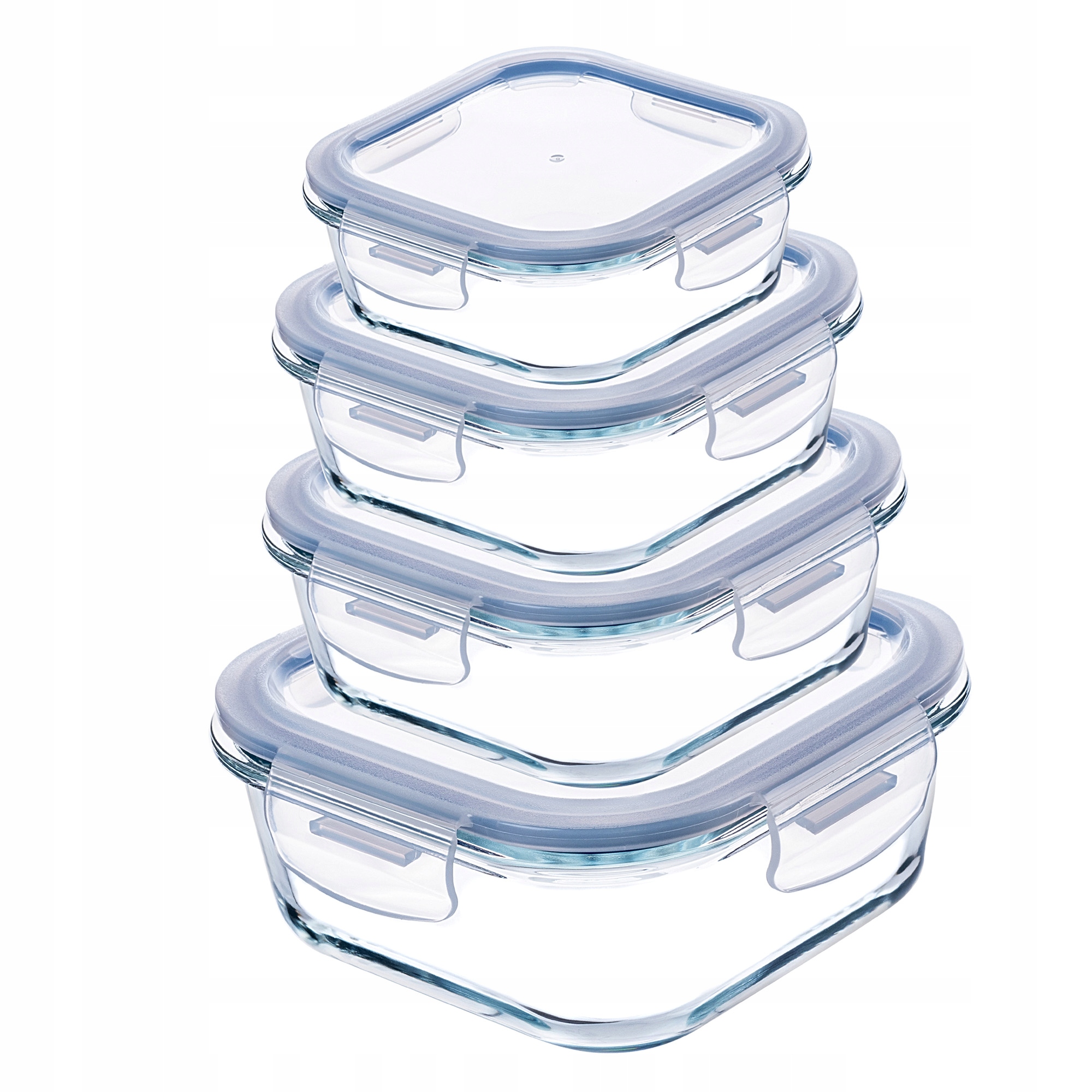 4x КАДАКС НАБІР КОНТЕЙНЕРІВ ДЛЯ ХАРЧІВ З КВАДРАТНОЮ КОРОБКОЮ СКЛЯНОЮ КРИШКОЮ