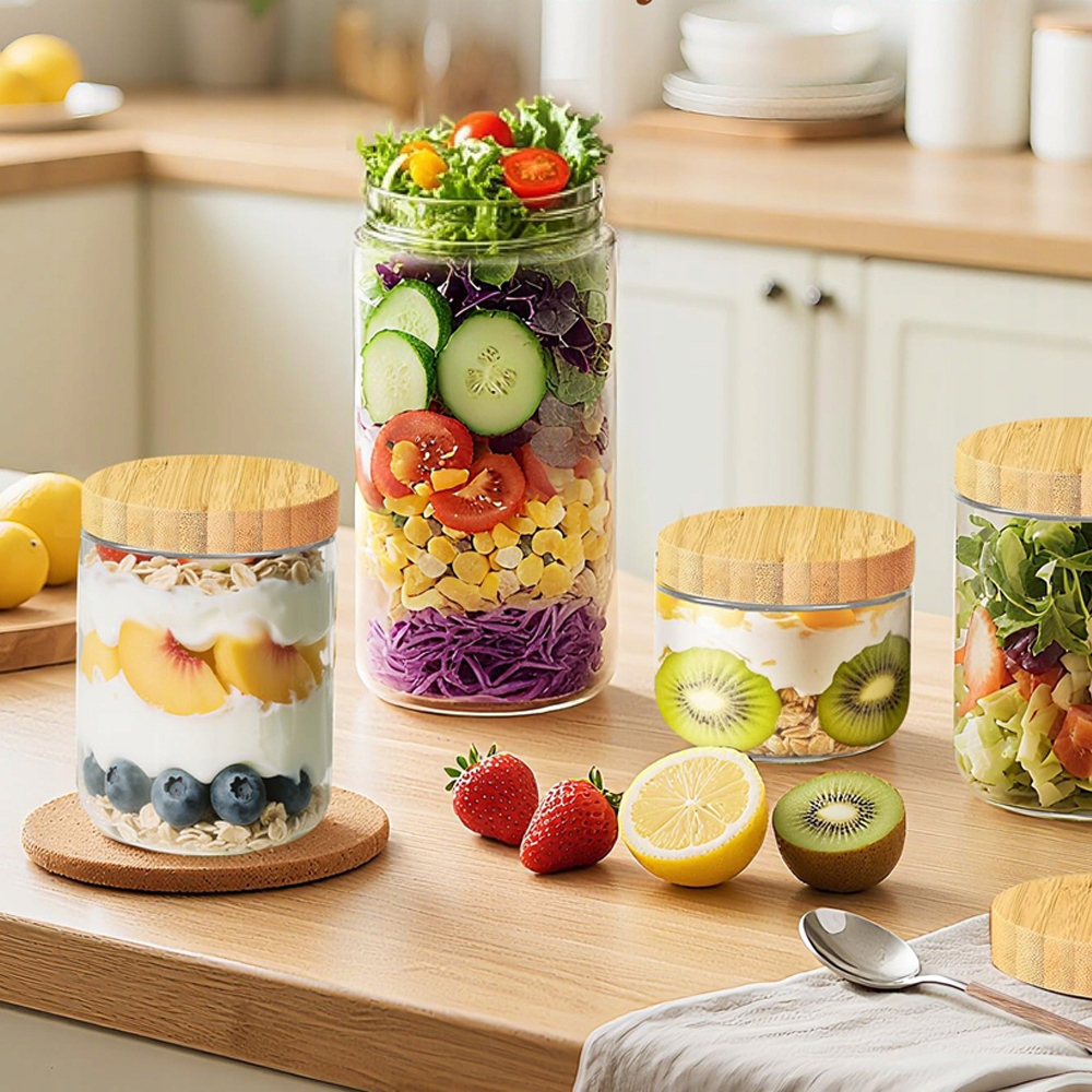 4x КУХОННІ СКЛЯНІ БАНКИ ДЛЯ ВІВСЯНИКІВ НА НІЧ 500 МЛ З КРИШКАМИ