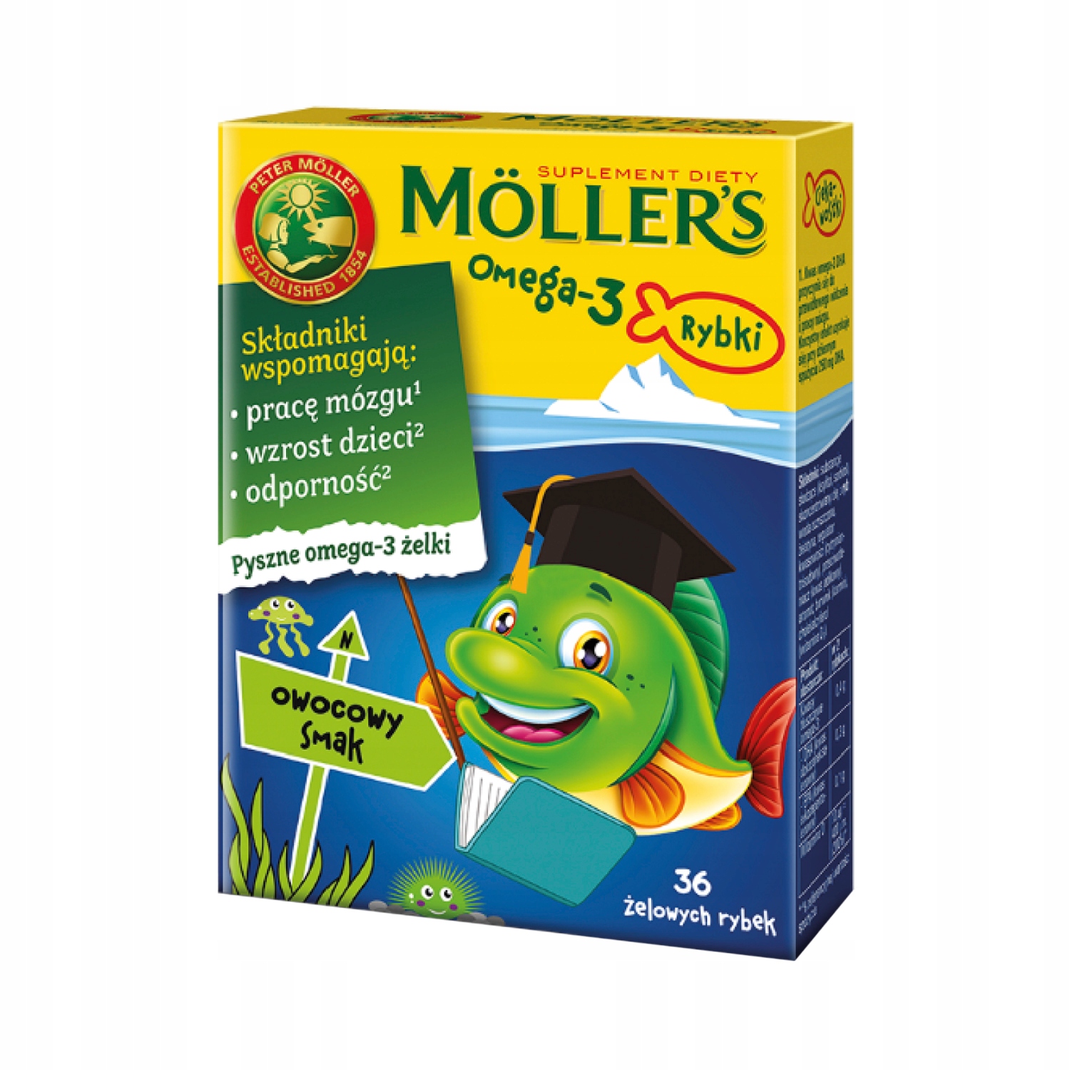 Möller's Omega-3 Fish - це омега-3 жирні кислоти EPA та DHA та вітамін D3 у формі смачного желе, яке не містять штучні барвники та підсолоджувачі.