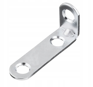 Монтажний кутник на 3 отвори 42 х 18 х 12 мм з діаметром отвору 6,0 мм - використовується у виробництві меблів - для з'єднання різних меблів. Виготовлений з білої оцинкованої сталі.