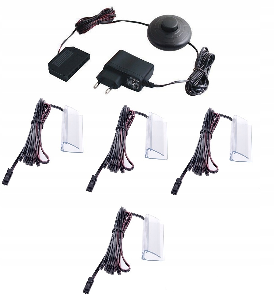 НАБІР ОСВІТЛЕННЯ ДЛЯ СКЛЯНОЇ ПОЛИЦІ 4 x LED CLIP ПВХ СВІТЛО НЕЙТРАЛЬНО БІЛИЙ.