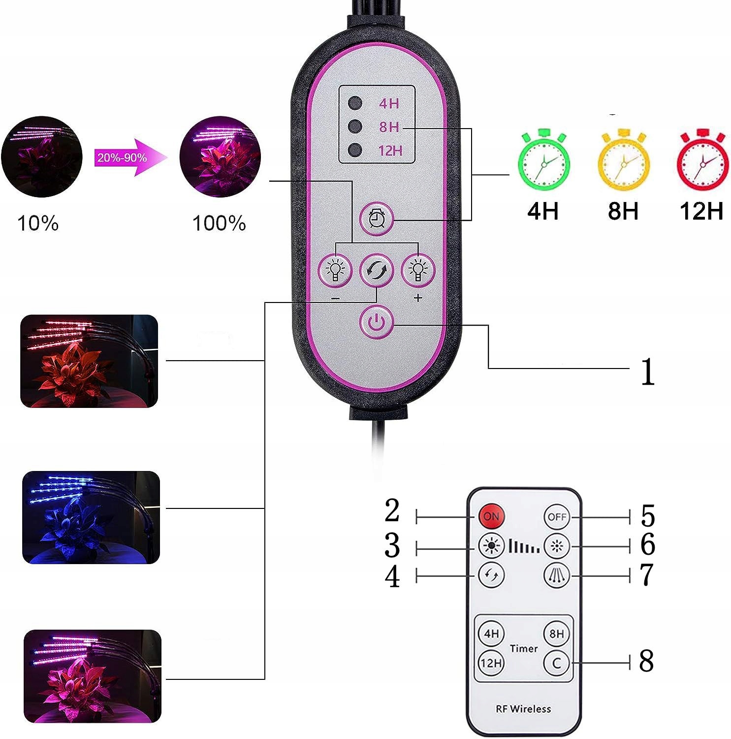 🌷 3 ПАРАМЕТРИ ТАЙМЕРА Лампи для вирощування рослин налаштовано за допомогою таймера з функцією 3-режимного циклу, який увімкнено протягом 4/8/12 годин. Якщо живлення підтримується, він може автоматично вмикатися та вимикатися щодня відповідно до ваших налаштувань. Лампа для росту дбає про ваші рослини, коли ви на роботі чи у відпустці, легко та зручно!
