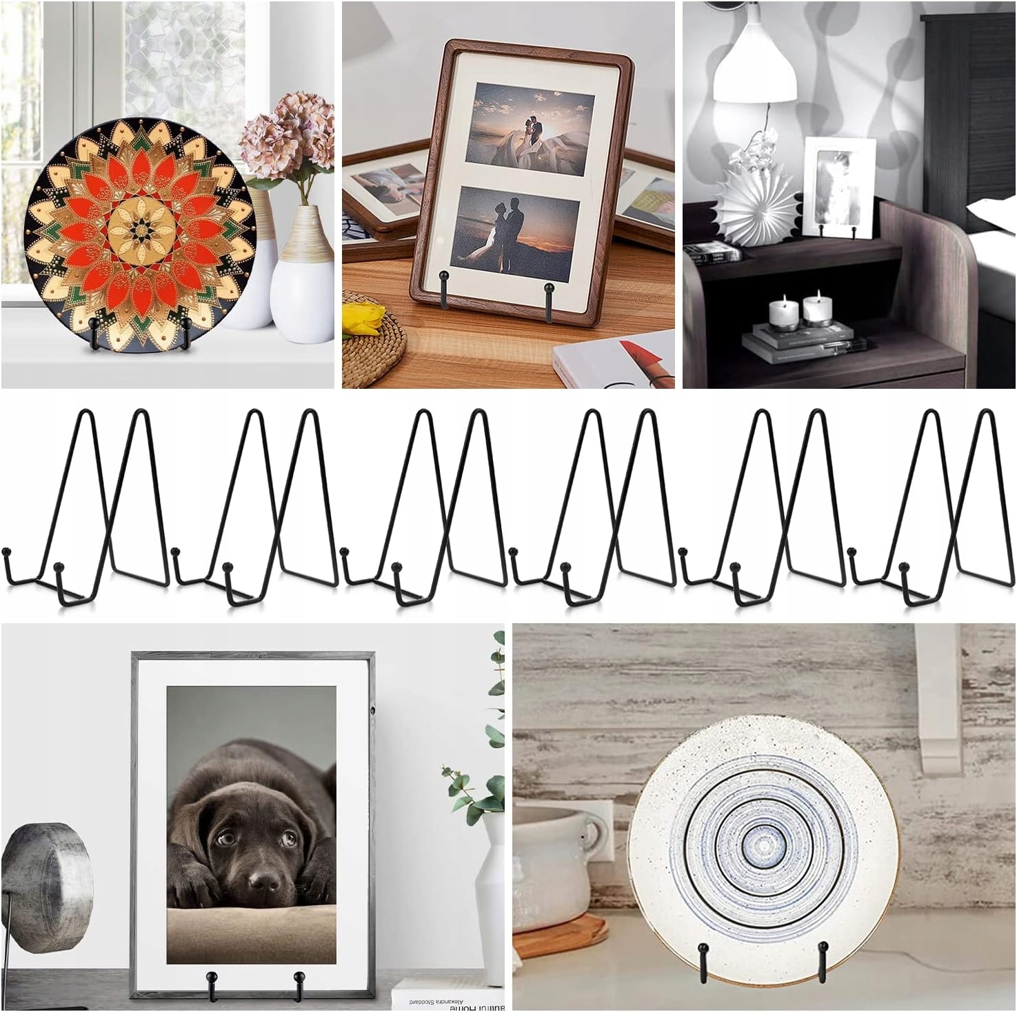 💖💖Стильний і практичний дизайн: Ці мольберти добре виготовлені, достатньо міцні, щоб утримувати всілякі тарілки, фотографії, картини в рамках, твори мистецтва, ремісничі ярмарки, продукти тощо. Зображення означає дисплей із простим і елегантним лінійним дизайном, який зробить ваші виставлені витвори мистецтва та ремісничих виробів насолодою для очей.