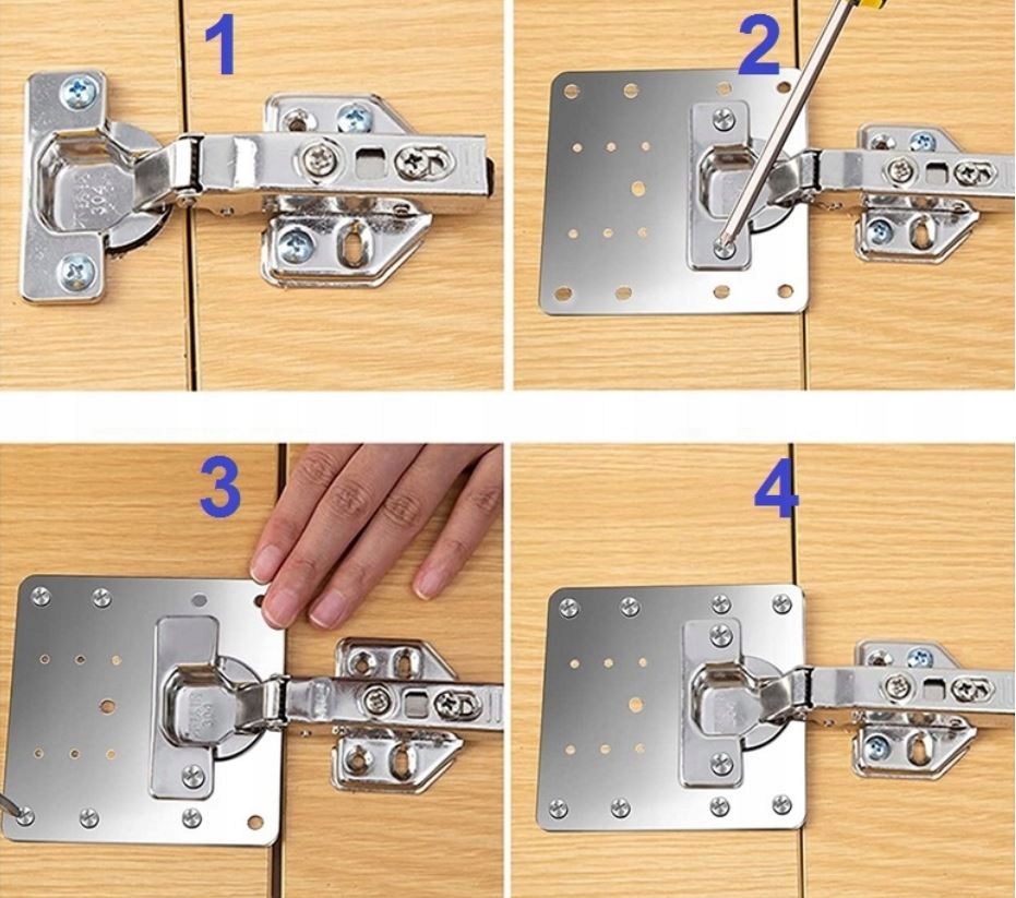 ПЛАСТИНИ для ремонту відірваних меблевих петель є ідеальним рішенням для людей, які шукають практичний і довговічний спосіб відновити стабільність і функціональність своїх меблів. У набір входить 4 ремонтні пластини, які легко встановлюються.