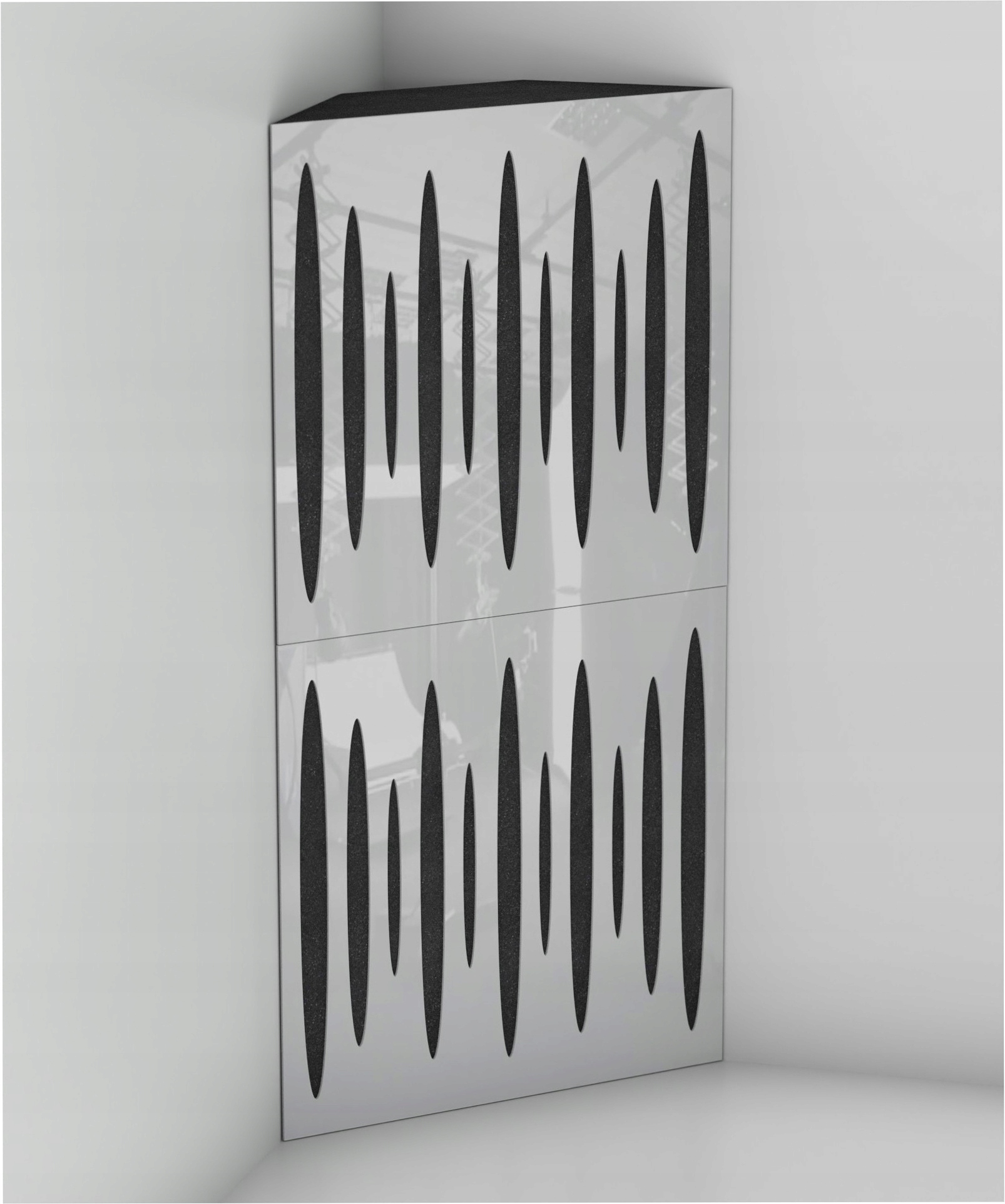 Імпульсні кутові басові пастки ідеально розташовують у кутах кімнат, щоб усунути проблеми з низькими частотами та мінімізувати відлуння. Трапецієподібна форма забезпечує точне прилягання до кута, плавно вирівнюючи його зі стінами.
