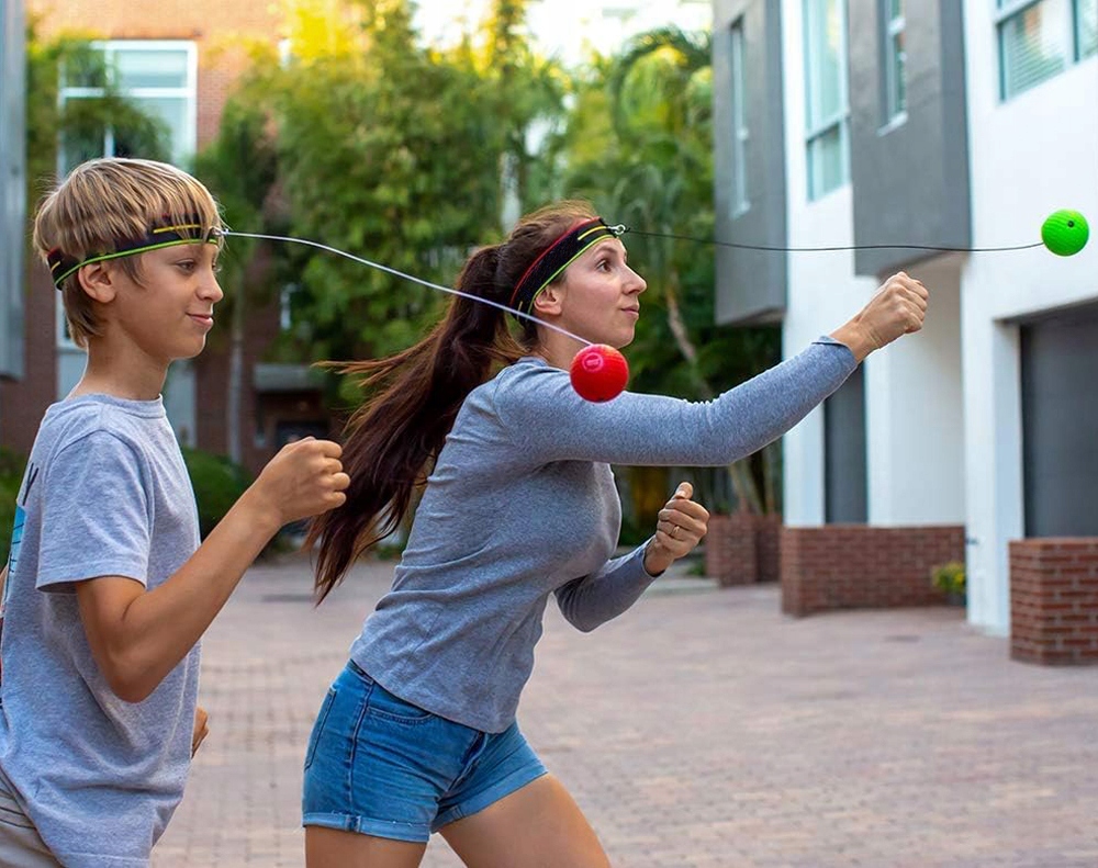 ✅ДВА ГРАВЦІ: 2 пов’язки на голову + 2 рефлексивні м’ячі для початківців дозволяють двом членам сім’ї вчитися та грати разом, а також спробувати свої сили в підрахунку ударів.
