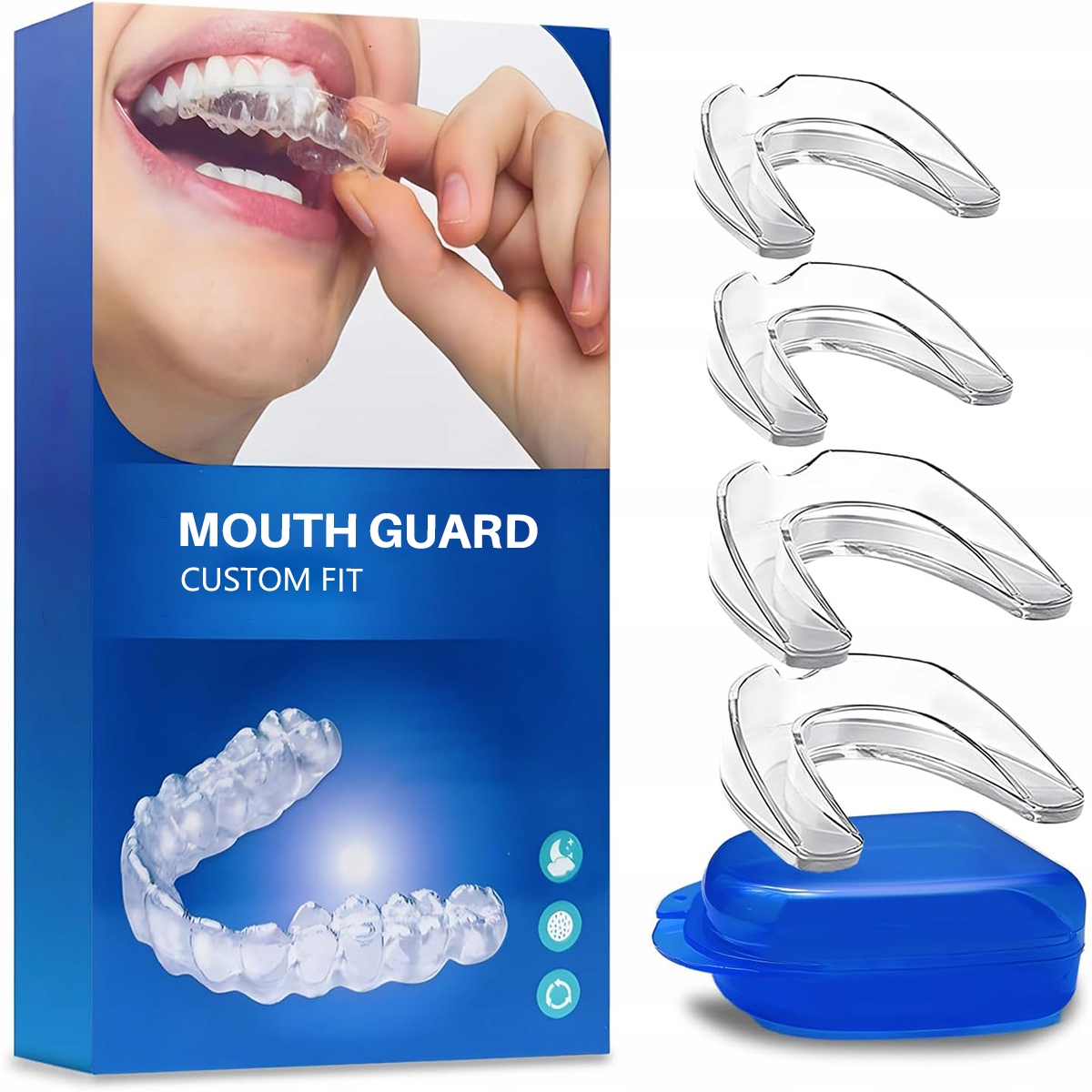 Нічна шина проти скреготу, шини 2 розмірів проти скреготу, 4 формованих капи проти скреготу та хропіння, нічна шина проти укусів, шина проти хропіння, прозора шина проти скреготу