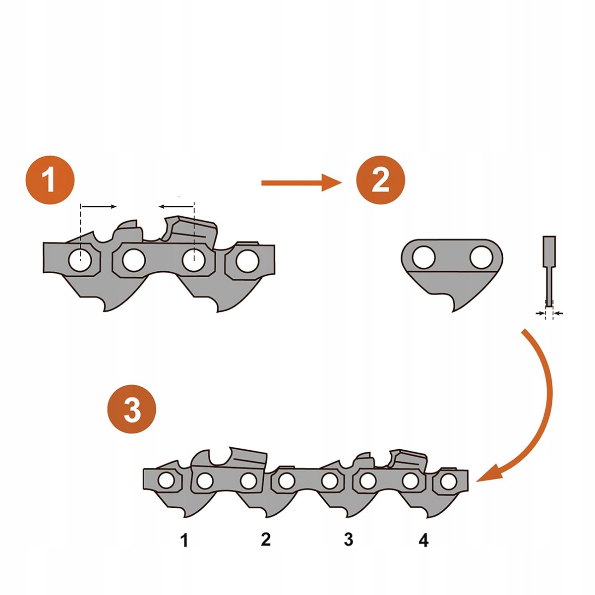 Найкраще просто порахувати ведучі ланки старого ланцюга. Крім того, ці дані зазвичай можна знайти на пилковому полотні.