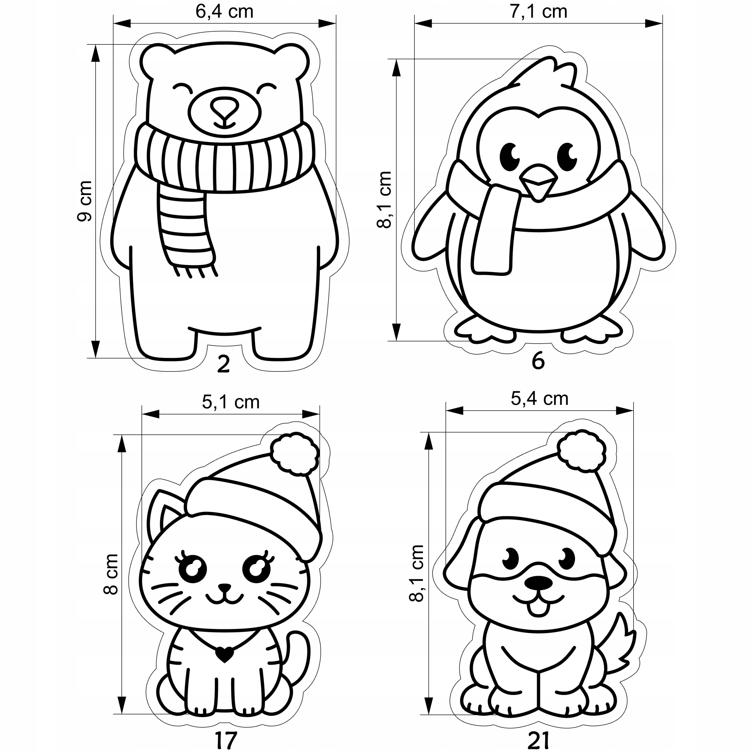 - Візерунок: Ведмедик 2, Пінгвін 6, Кіт 16, Пес 21