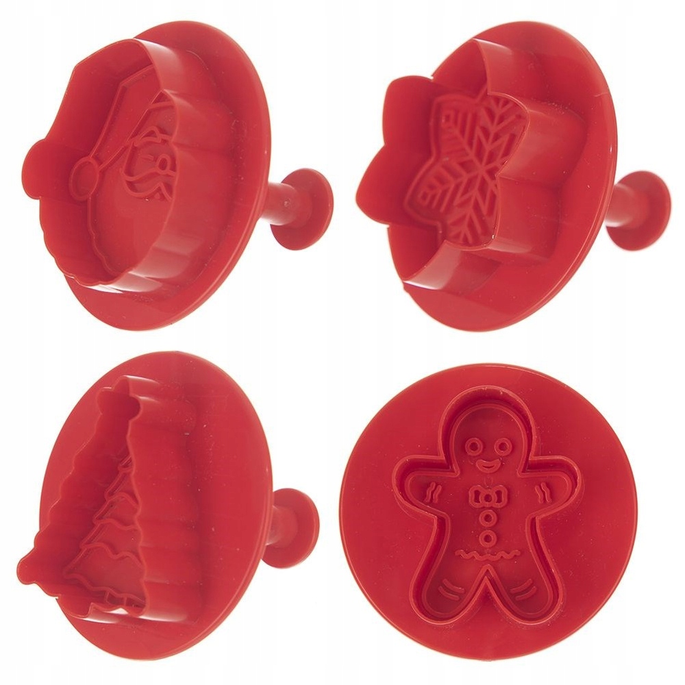 ✅ ПРАКТИЧНО - Набір з чотирьох кондитерських вирубок з поршнем у формі: ялинки, сніжинки, фігурки та голови Діда Мороза. Формочки мають зовнішні розміри: 6,5 х 6 см, тоді як отримане печиво має довжину від 5 до 5,5 см і ширину від 4 до 5,5 см. Ідеально підходить для приготування печива та пряників на Різдво.