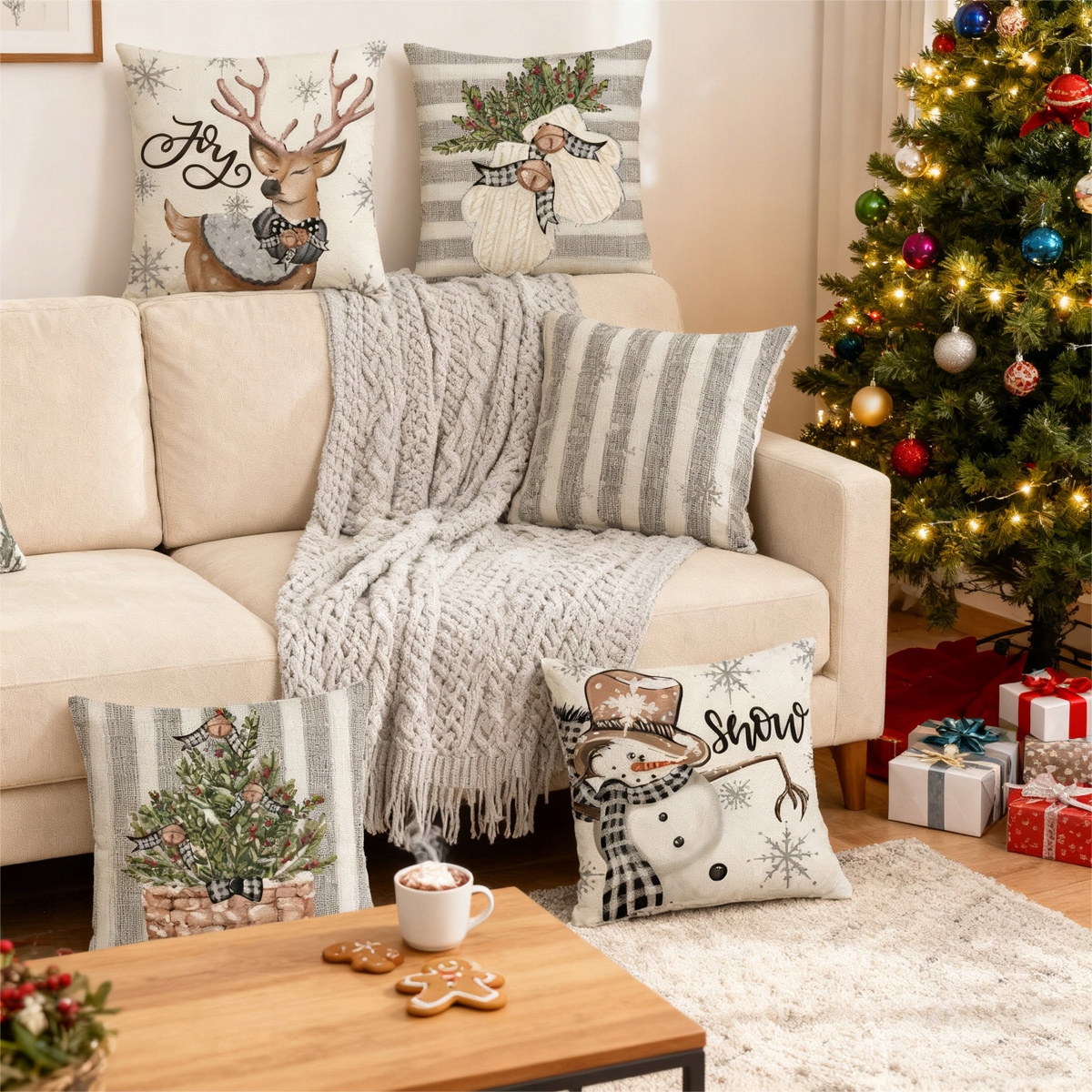 ✨✨✨Новорічні наволочки з оленями та сніговиком, набір 4 шт., 40х40 см, декоративні наволочки на диван, вітальню, вуличні прикраси (без вставки та наповнювача)✨✨✨