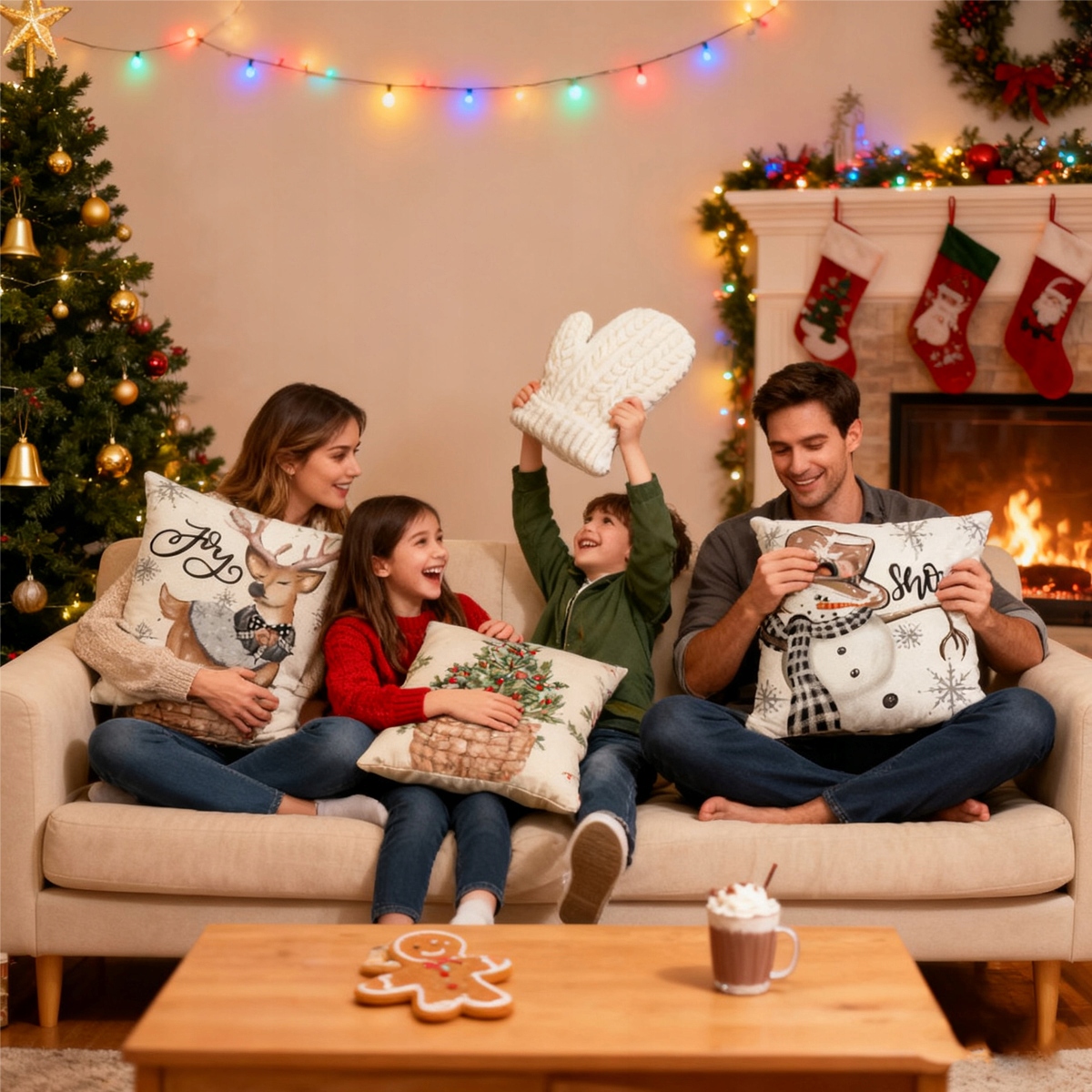 4x РІЗДВЯНІ ЗИМОВІ ДЕКОРАТИВНІ НАВОЛОЧКИ 40x40 СМ