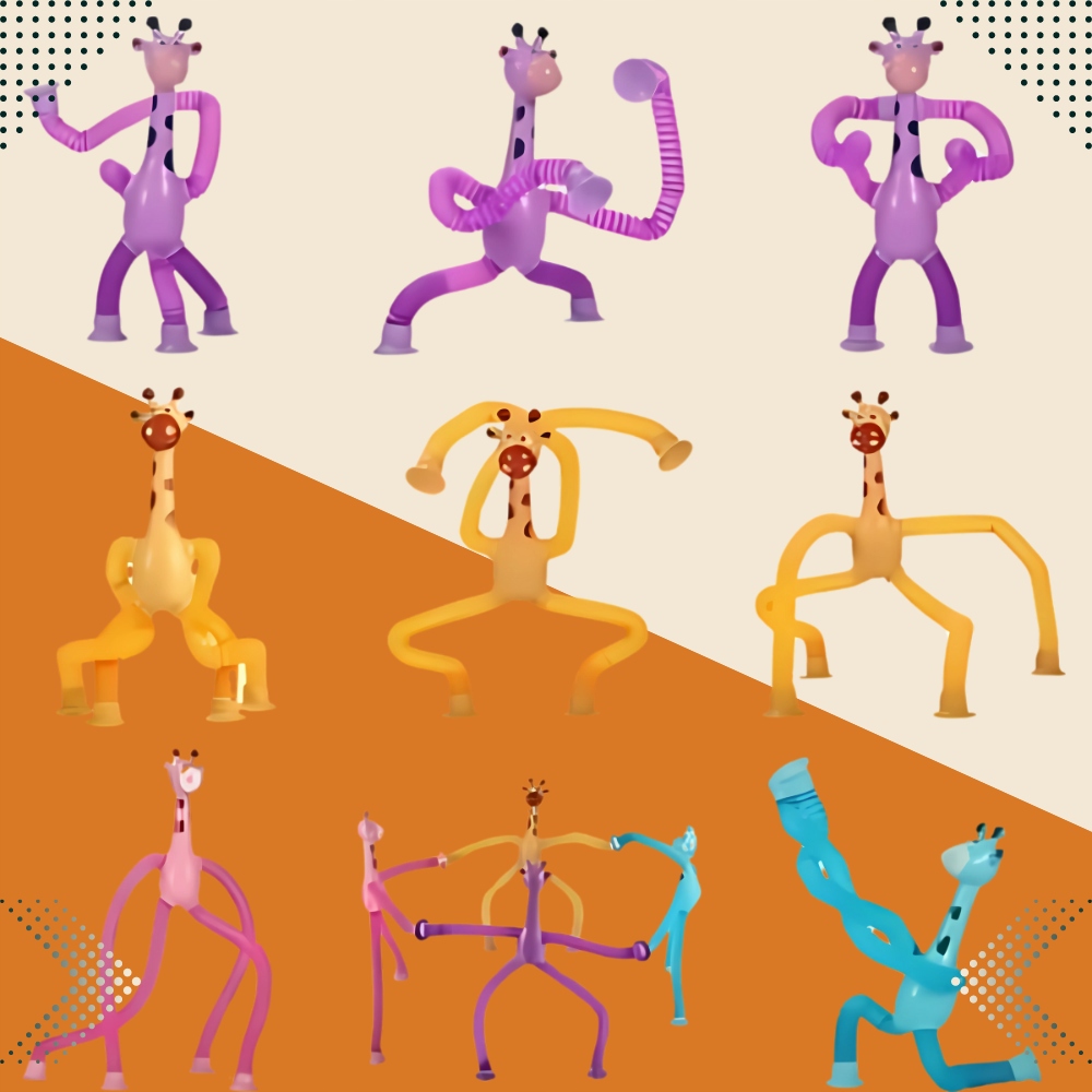 Набір містить 4 жирафи різних кольорів, які можуть можна розтягувати, згинати та кріпити завдяки присоскам. Забезпечте собі довгі години захоплюючих розваг і підтримку в релаксації.