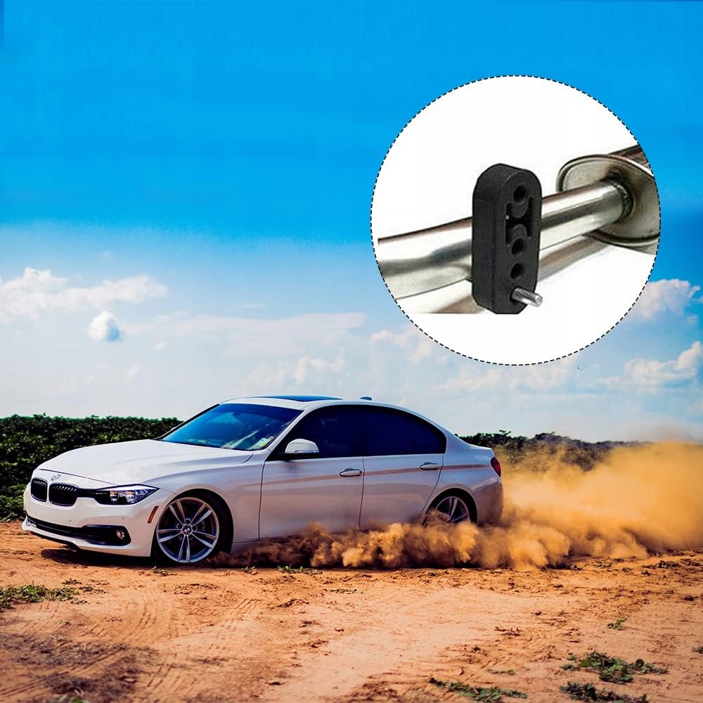Елемент, що з’єднує кронштейн вихлопної труби, глушник і підвіску шасі. Зменшує висоту вихлопної труби і кузова, а також площу контакту, що краще зменшує шум, що виникає під час роботи двигуна автомобіля, що спускається. Кріплення вихлопу та зниження вібрації.