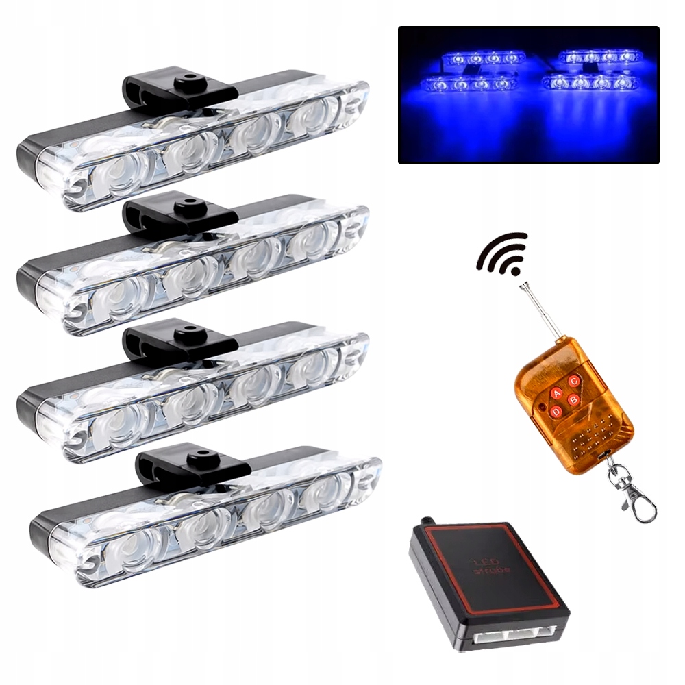 4x СВІТЛОДІОДНА ПОПЕРЕДЖУЮЧА ЛАМПА СИНІЙ СПАЛАХ ПУЛЬТ ДИСТАНЦІЙНОГО КЕРУВАННЯ СТРОБОСКОП У БАМПЕРІ