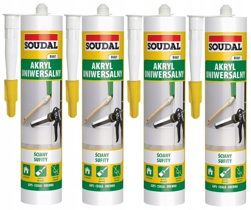 4x SOUDAL AKRYL Ściany Sufit ELASTYCZNY BIAŁY 280 ml