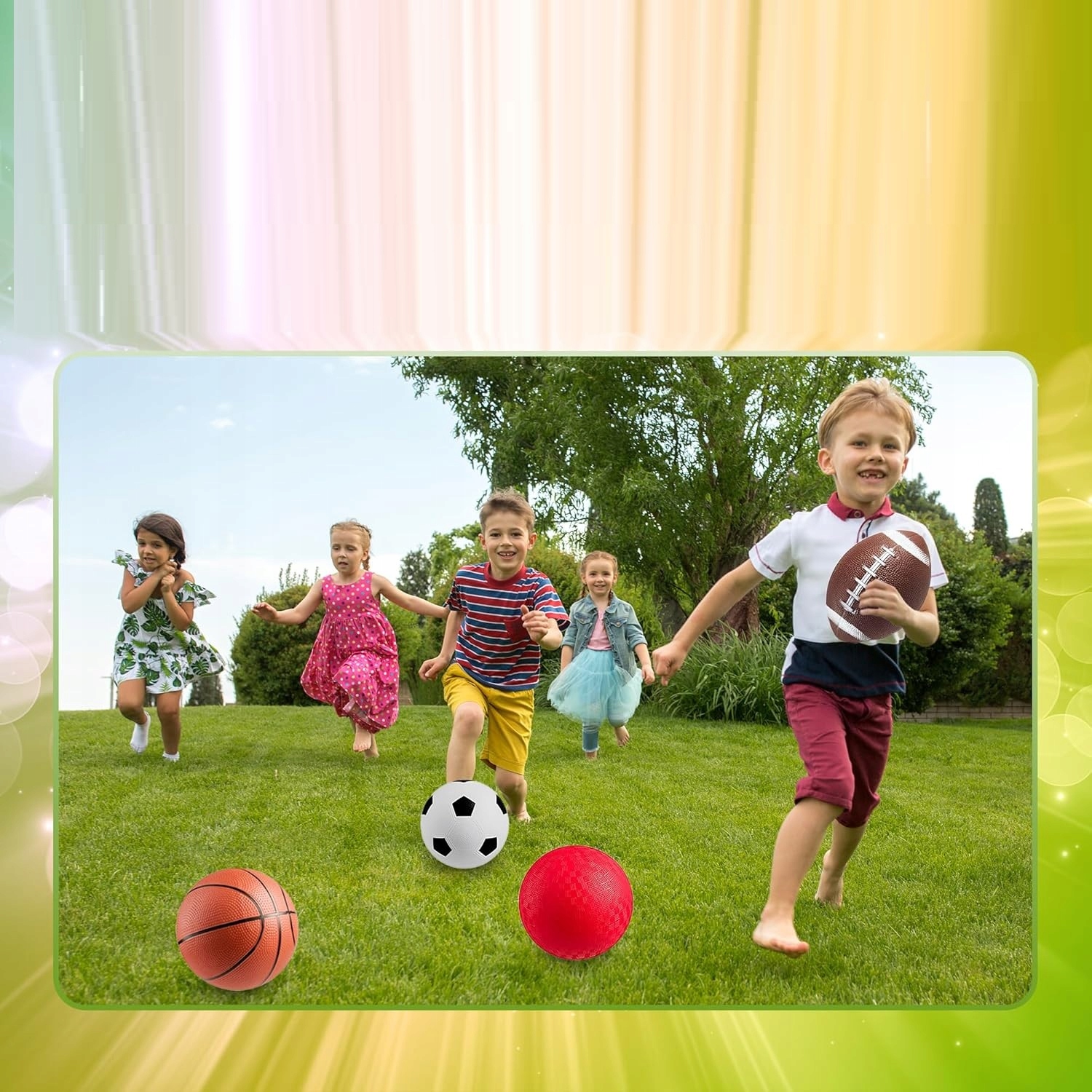 Набір із 4 спортивних м’ячів для дітей – регбі, баскетбол, футбол тощо