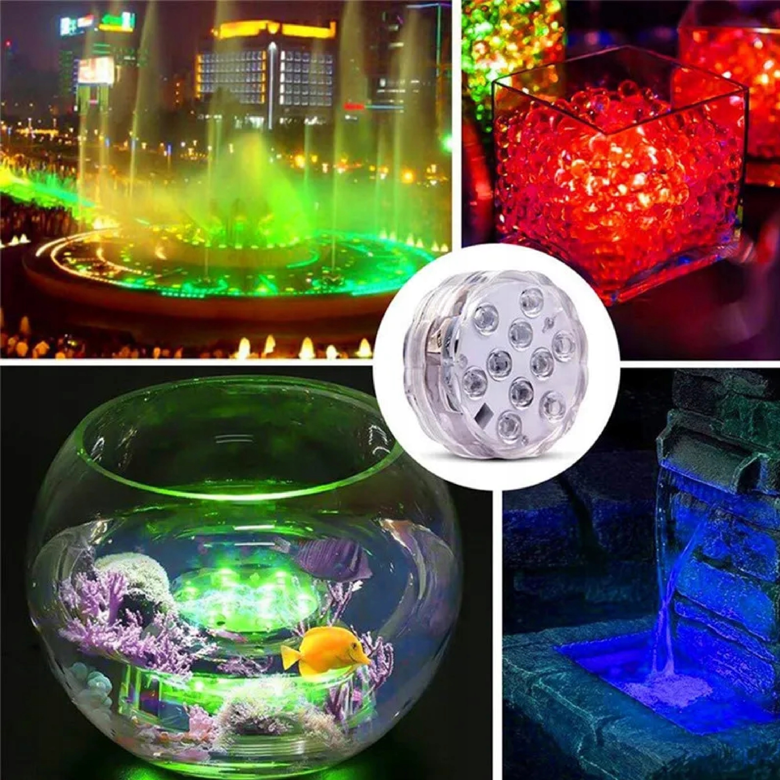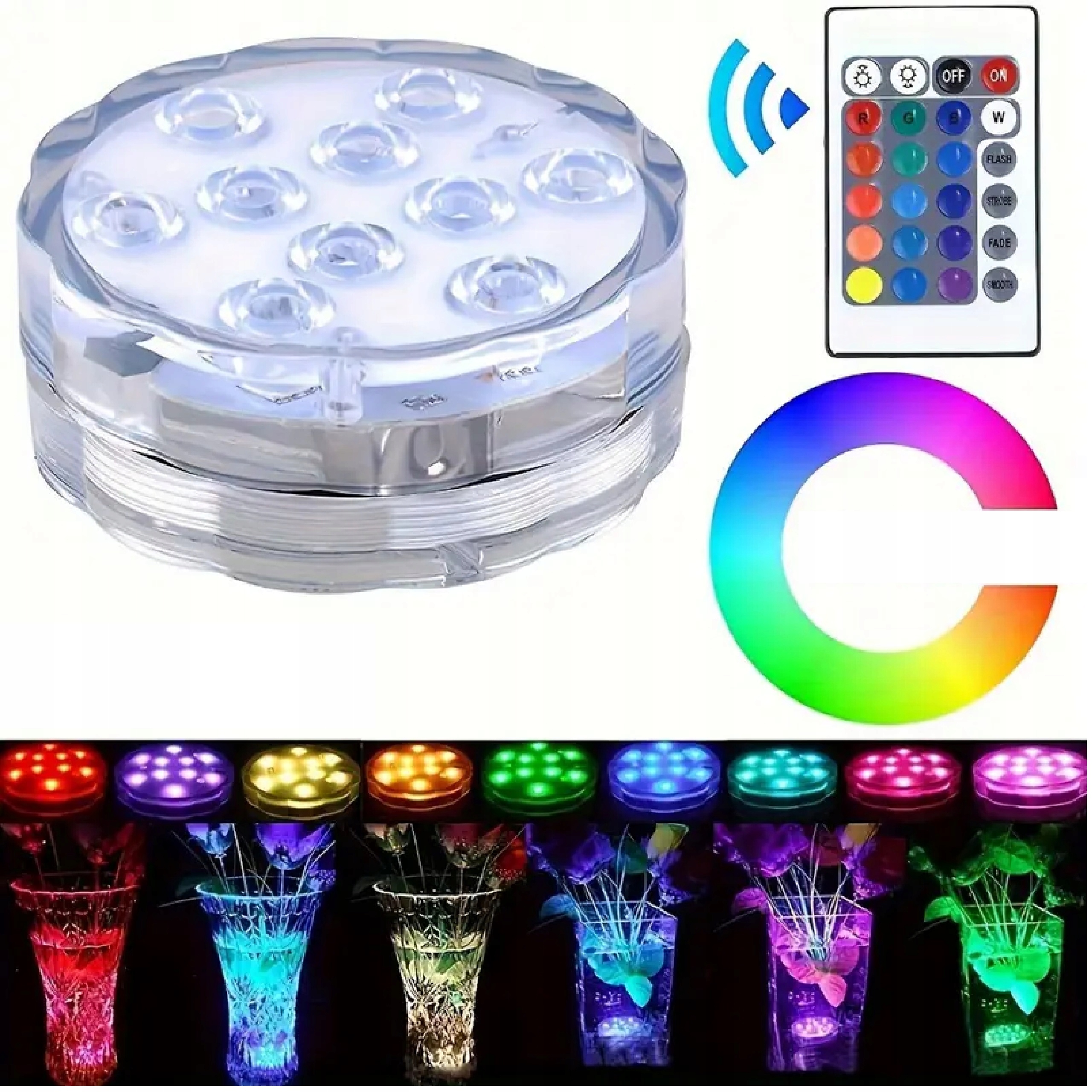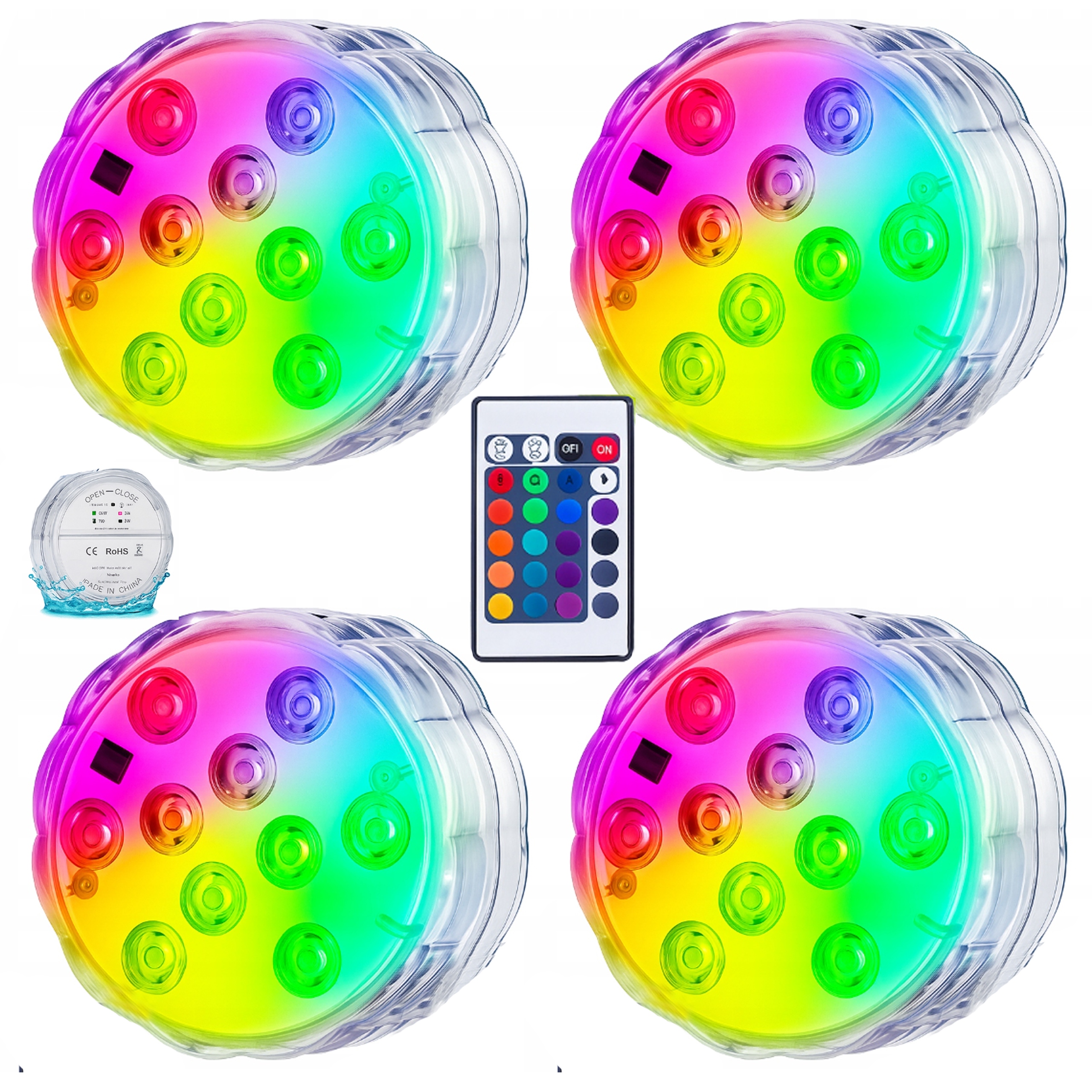 Сучасні світлодіодні світильники з 10 діодами та пультом дистанційного керування є ідеальним рішенням для освітлення басейну, джакузі, водного ставу , а також в інтер'єрі, саду чи терасі.