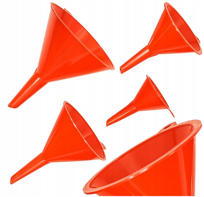 Набір з 4 універсальних пластикових лійок різного діаметру (52, 75, 95, 115 мм). Корисно вдома, в гаражі та майстерні.