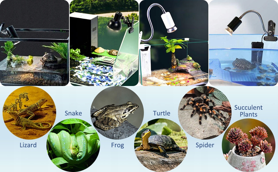 Лампи для обігріву рептилій E27 ідеально підходять для маленьких геконів, рептилій, що вилуплюються, амфібій або безхребетних. Такі як черепахи, павуки, тарантули, змії, пітони, ящірки, гекони, бородаті дракони, ігуани, жаби, їжаки тощо.