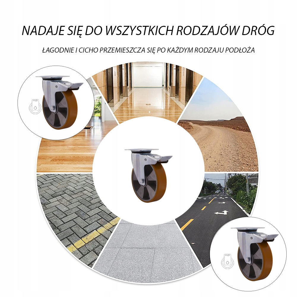 - КОЛЕСО складається з алюмінієвої втулки та поліуретанової шини, має подвійну кулькову опору. Колеса мають міцність 380 кг на колесо. Вони повільно зношуються, стійкі до пошкоджень, поглинають удари та вібрацію. Вони обертаються на 360 градусів, полегшуючи маневрування меблями або коляскою. Вони плавно обертаються на твердих і гладких поверхнях, як-от бетон, з дуже невеликим тертям.