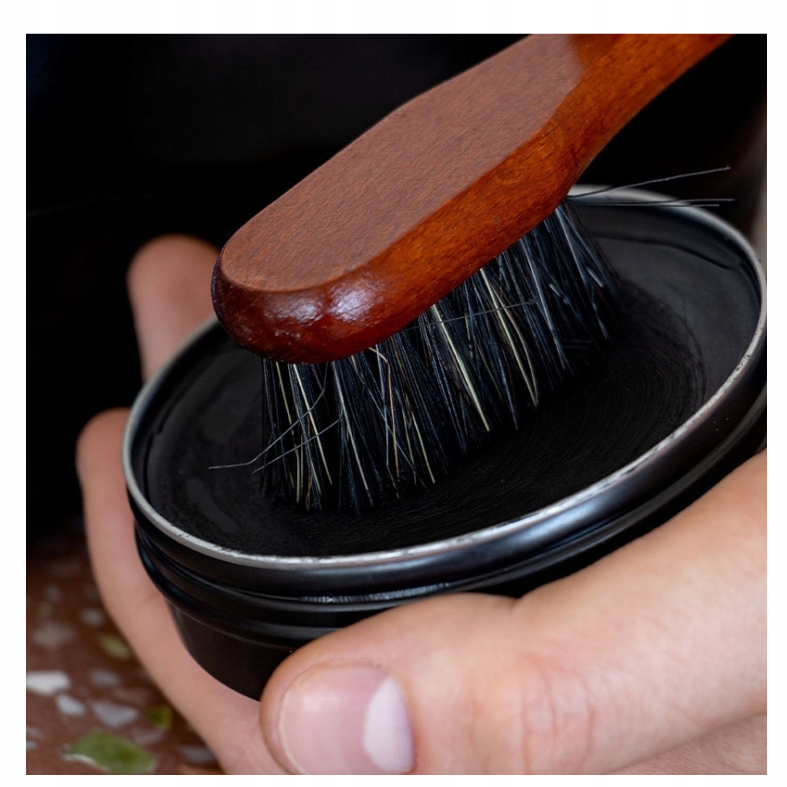 a. Це полегшує точне нанесення паст та кремів -щільна щетина коня рівномірно розподіляє підготовку на поверхні взуття, досягаючи важких -дорічних місць.