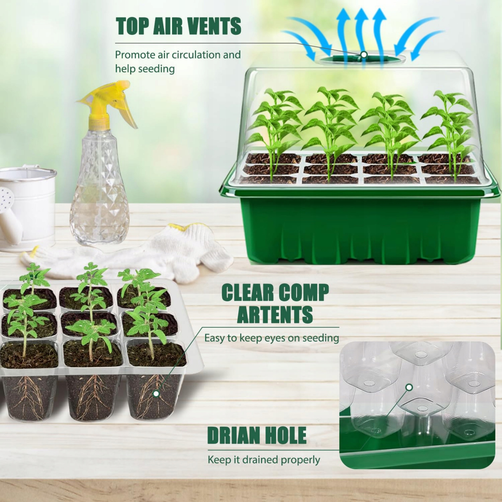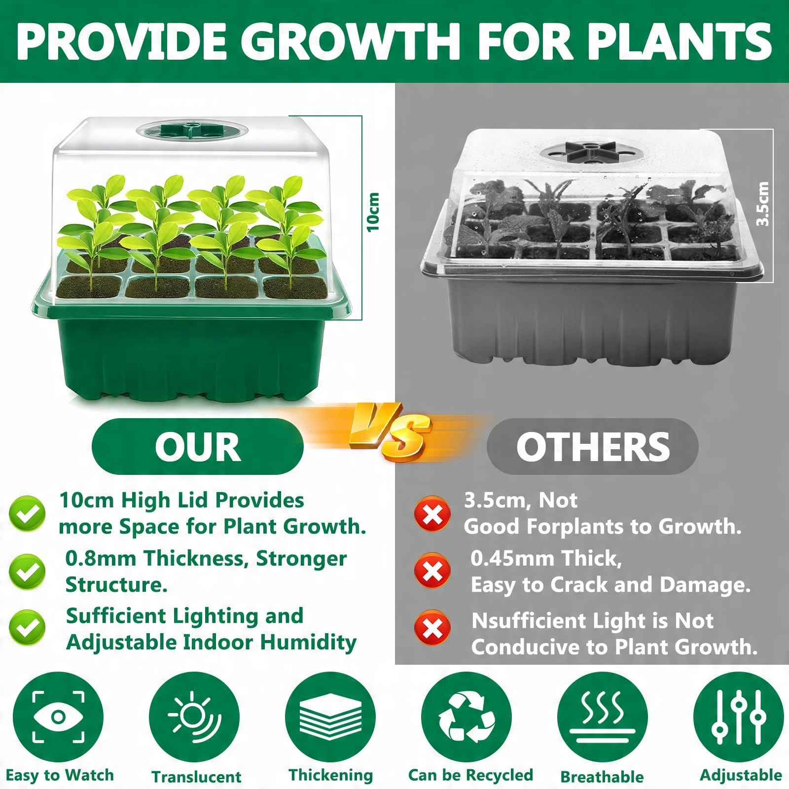Наші набори посівів насіння виготовлені з потовщеного матеріалу PP до 0,8 мм, що міцний і міцний. Дуже прозора обкладинка дозволяє ретельно спостерігати за ростом рослин і дозволяє їм повністю фотосинтез. Вентиляційні отвори та дренажні отвори поглинають поживні речовини з повітря і злити зайву воду. Набір для проростання насіння - це незамінний інструмент для садівника.
