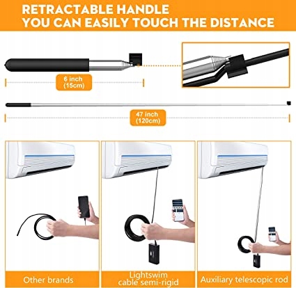 - Бездротовий ендоскопічний зонд Lightswim має діаметр лише 5,5 мм і майже на 3 мм менший за інші ендоскопи на ринку. Це найменший Wi-Fi ендоскопічний об’єктив. Висувна ручка дозволяє легко отримати доступ до вузьких і темних місць для безпроблемних перевірок, таких як технічне обслуговування автомобіля, виявлення електричних схем, ремонт стоків і побутової техніки.