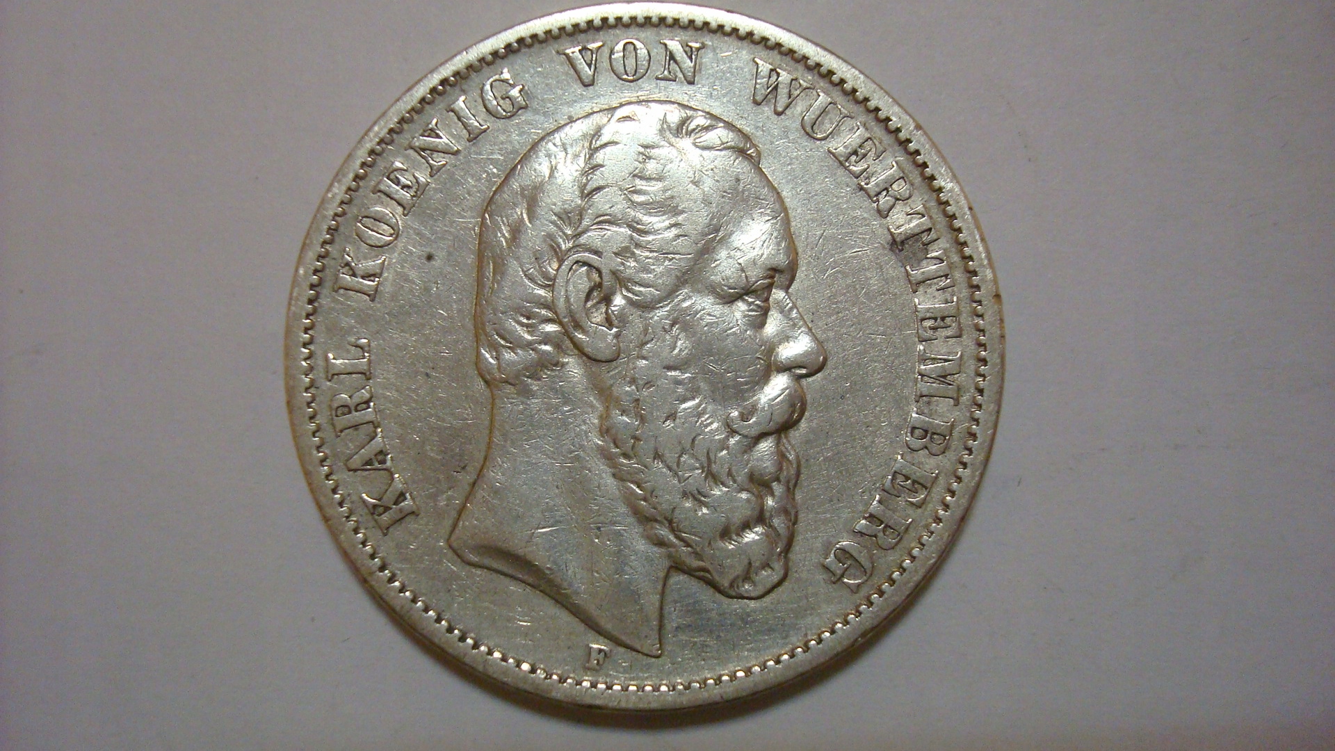 5 марок - 1876 F - ВЮРТТЕМБЕРГ - Карл I