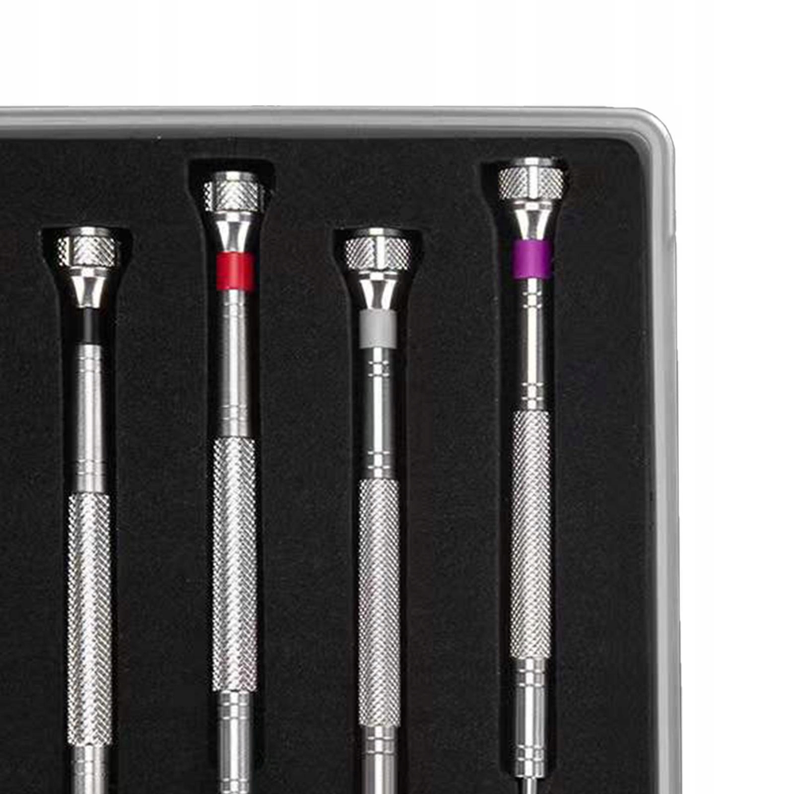 [Відмінна майстерність]: кожна головка викрутки була ретельно виготовлена, а найтонша точка - лише 0,3 мм, що ідеально підходить для легкого демонтажу невеликих гвинтів Зазвичай у механізмів годинника. Він ретельно упакований у коробку, містить 5 викруток і 5 запасних порад