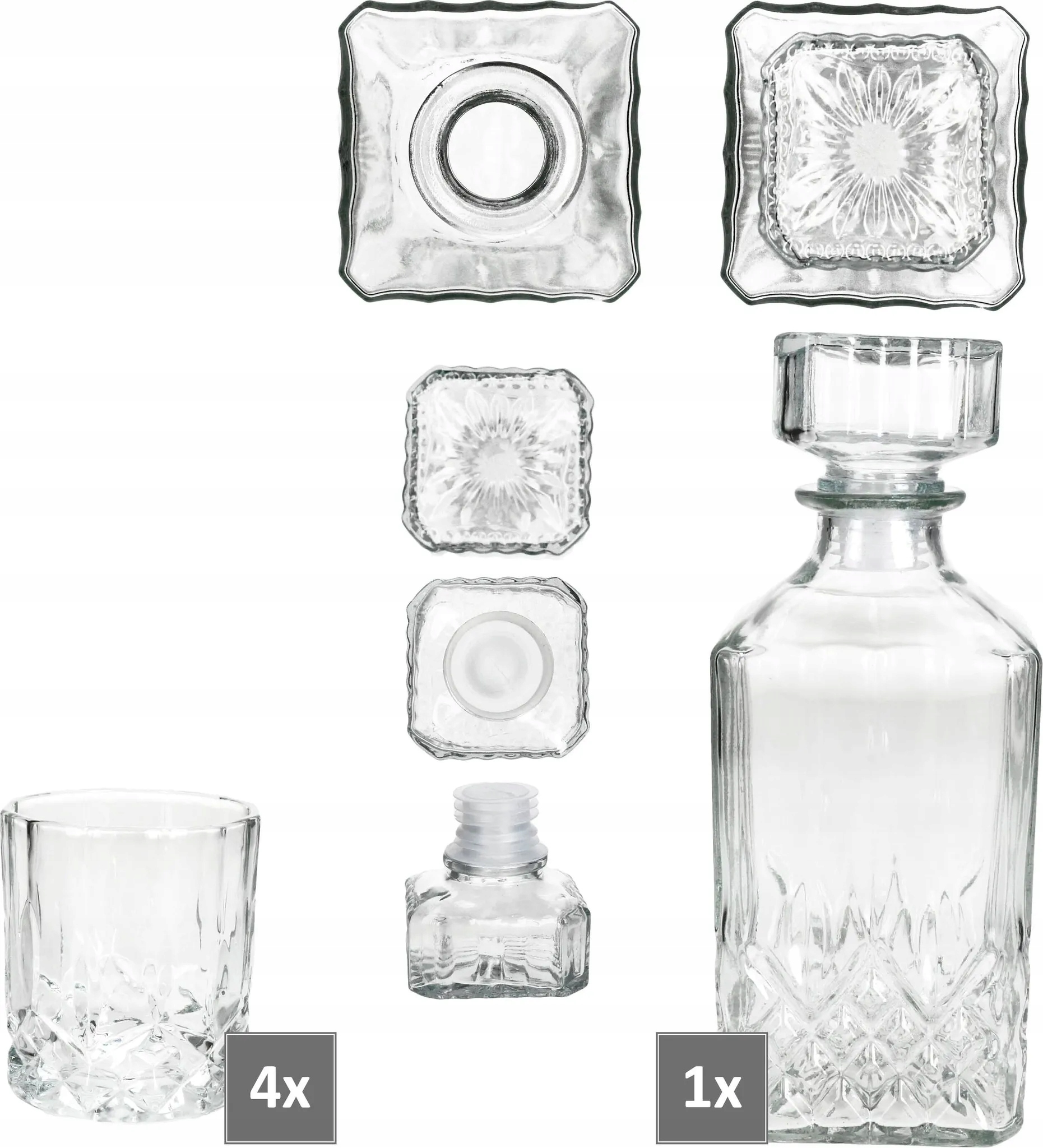 - 1x віскі карафе 720 мл отвір 2,7 см, довжина 9 см, ширина 9 см, висота 22,5 см, 730 г
