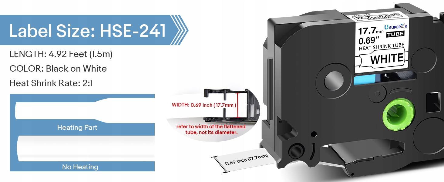 5 чорних шматочків на білій термічній трубці, призначеній для брата HS HS 241 17,7 мм