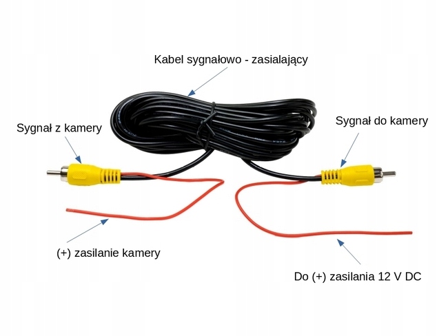 - RCA кабель живлення камери