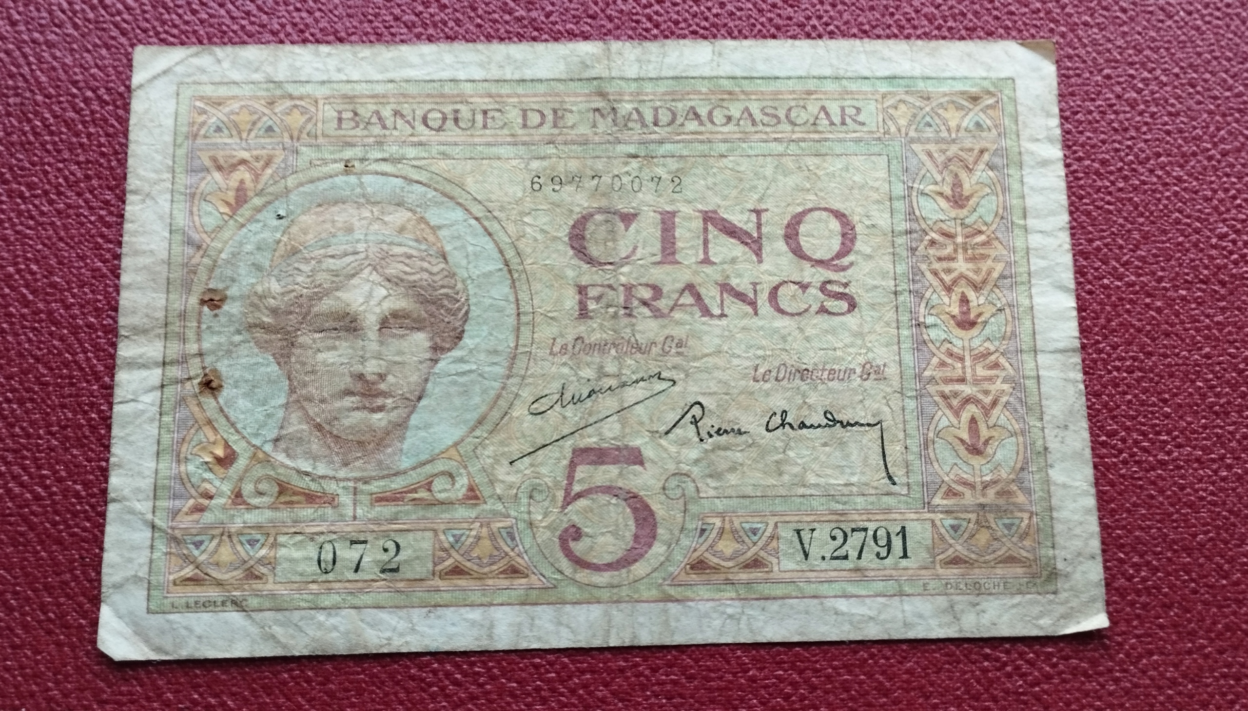 5 FRANCES MADAGASCAR 1937