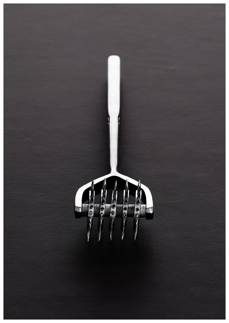 Колесо вкрите гострими шипами, а стимуляція від багатьох шпильок захоплююча. Якщо у вас зав’язані очі, ви можете поклястися, що вас ріжуть скальпелем, навіть якщо нічого навіть не проникло у вашу шкіру.