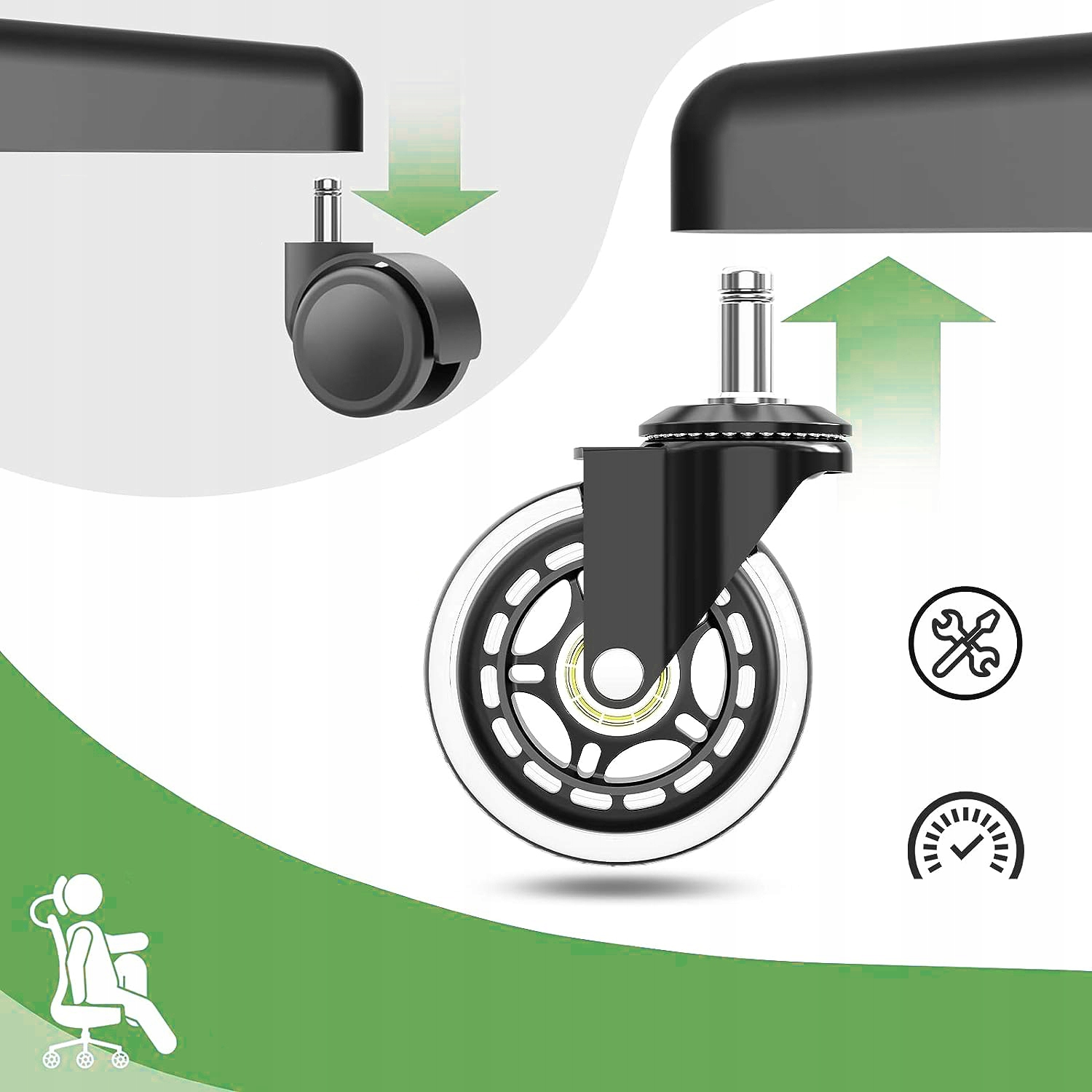 【ОСТАННІ КОЛЕСА ДЛЯ КРІСЛІВ, ЯКІ ВАМ КОЛИ-небудь ПОТРЕБУЮТЬСЯ!】 - Не всі коліщатка для офісних крісел однакові. Наші опорні колеса офісного крісла виготовлені з промислової сталі, точних кулькових підшипників і міцного поліуретану. Колеса для офісного крісла витримують навантаження до 295 кг!